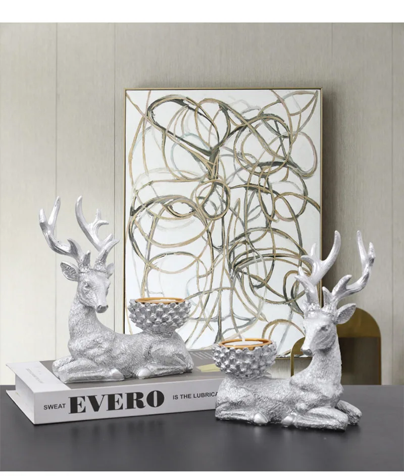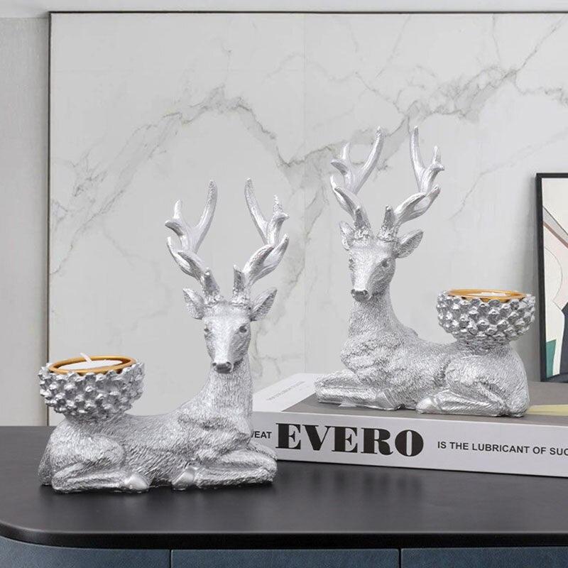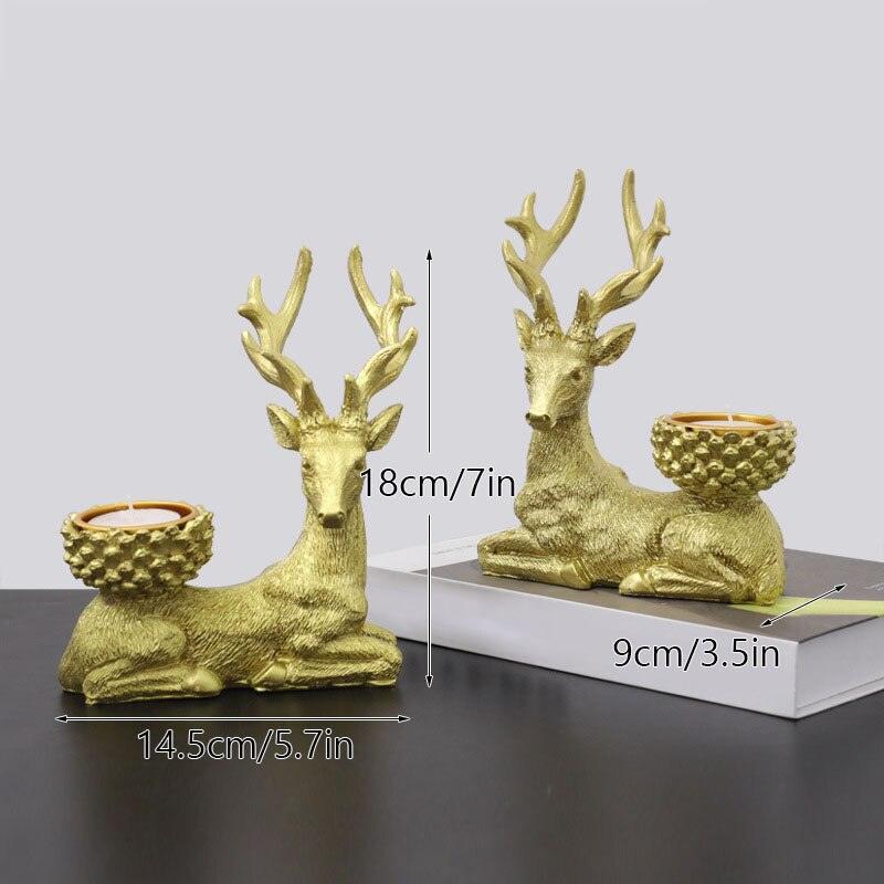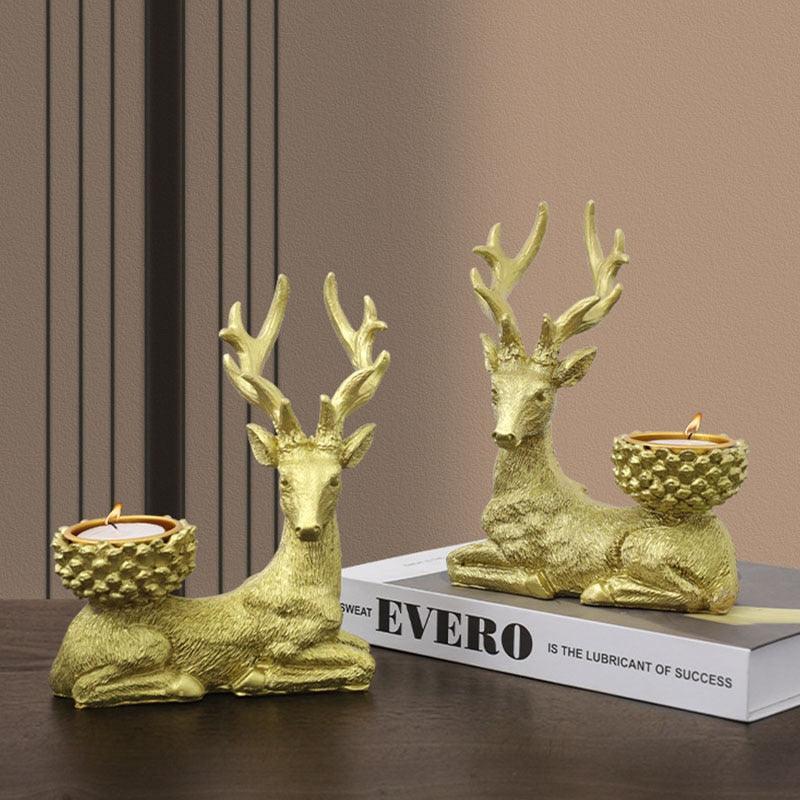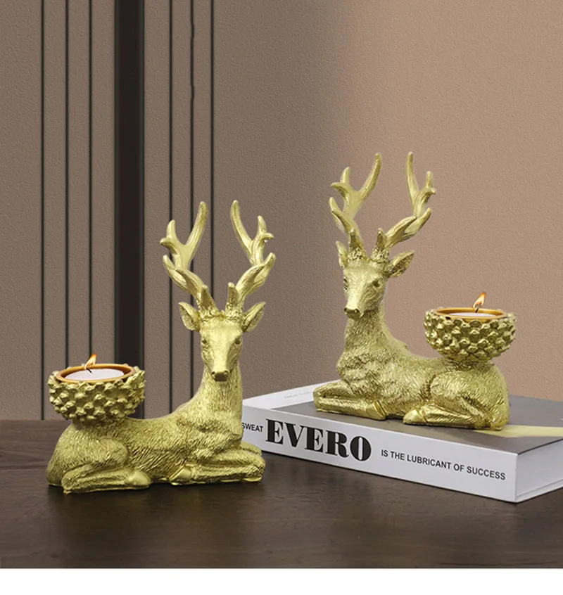 수지 엘크 촛대 인형 | 가정 장식을 위한 황금 사슴 캔들 홀더