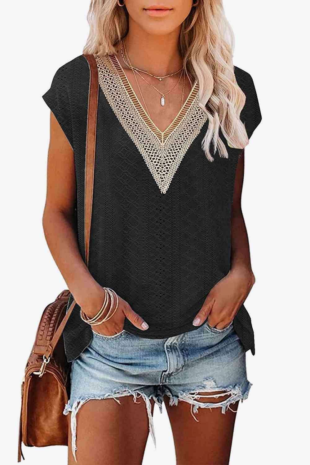 패턴 유형: 쉐브론 스타일: 캐주얼 특징: 투각 네크라인: V 넥 길이: 일반 소매 길이: 반소매 소매 유형: 일반 소매 쉬어:... Read more Read more