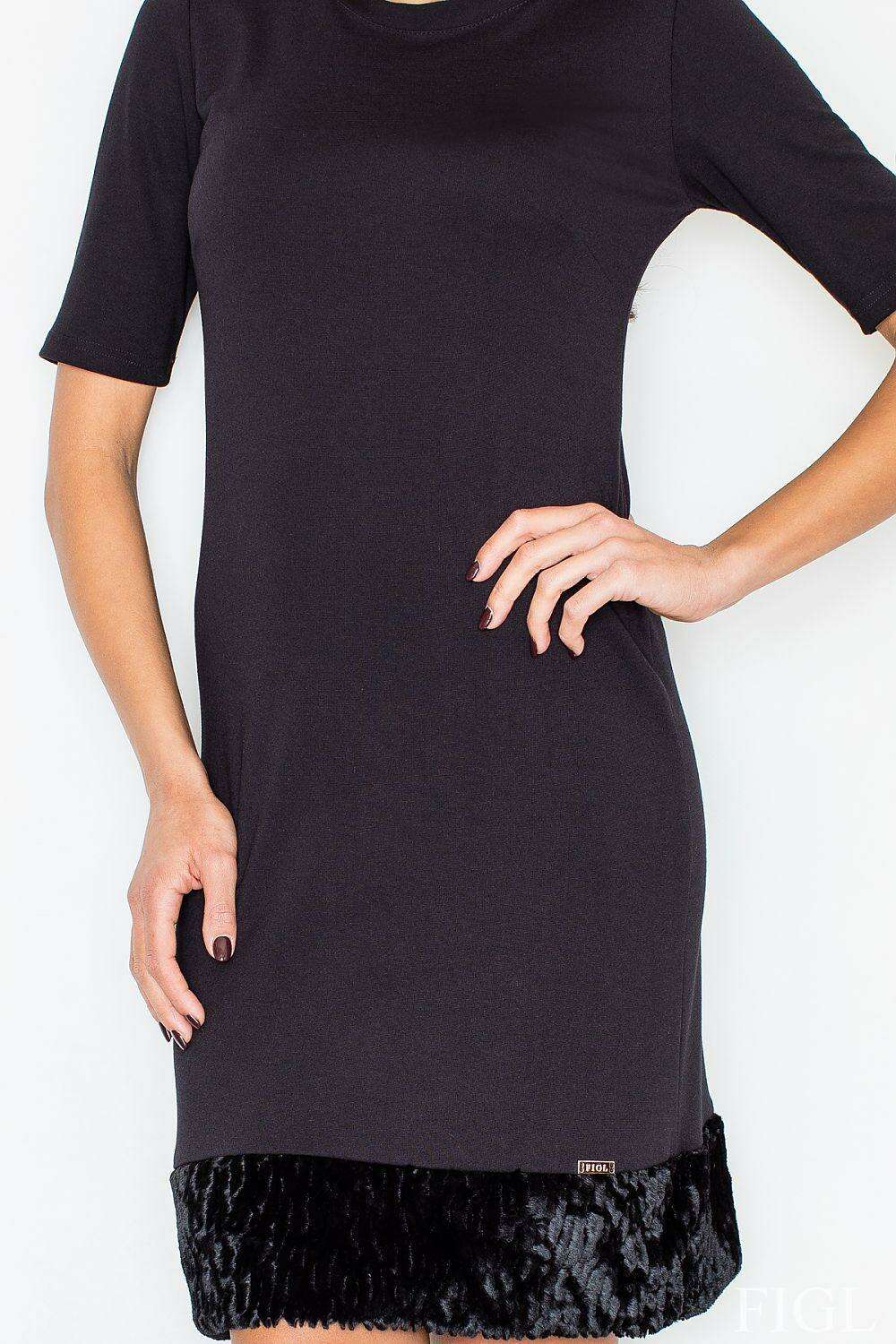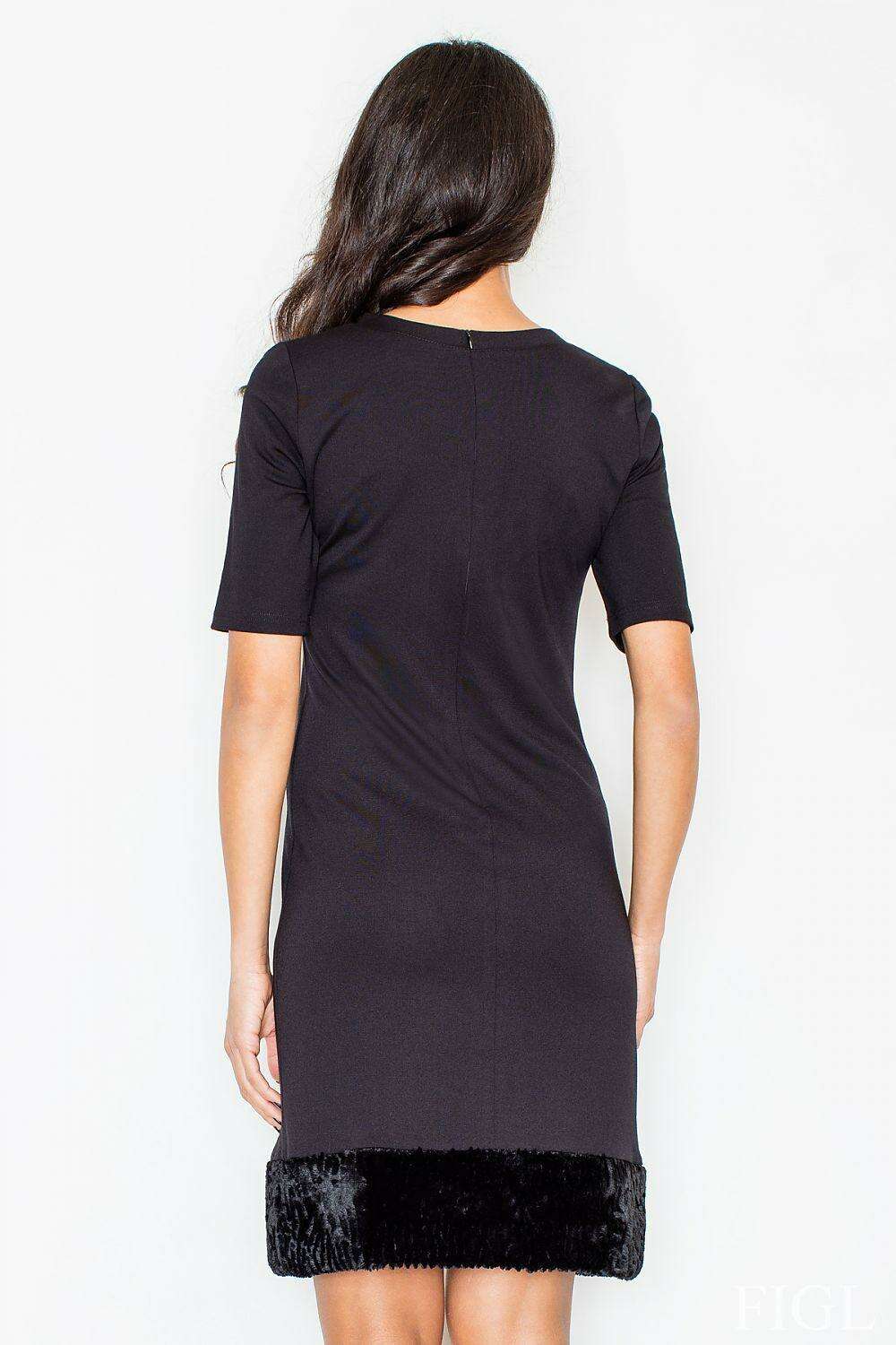 Chic Faux Fur-Accented Pencil Dress for Timeless Elegance