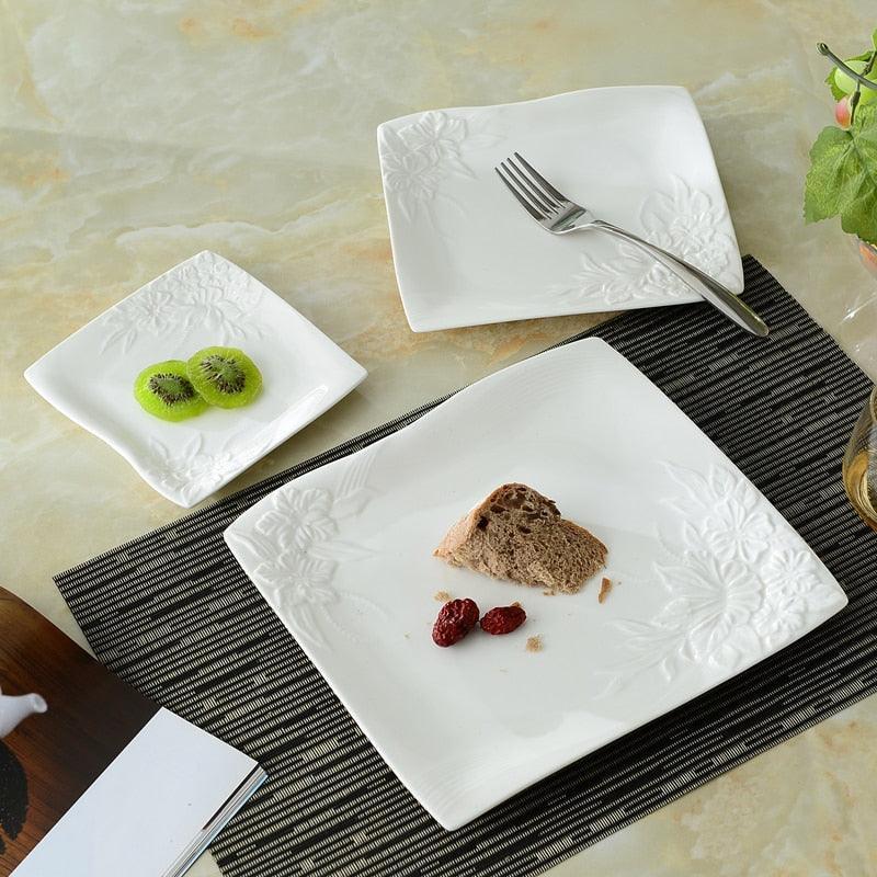 플라워 스탬프 세라믹 디너 플레이트 세트 - 쇠고기, 스테이크, 샐러드 및 스파게티용 우아한 서빙 식기