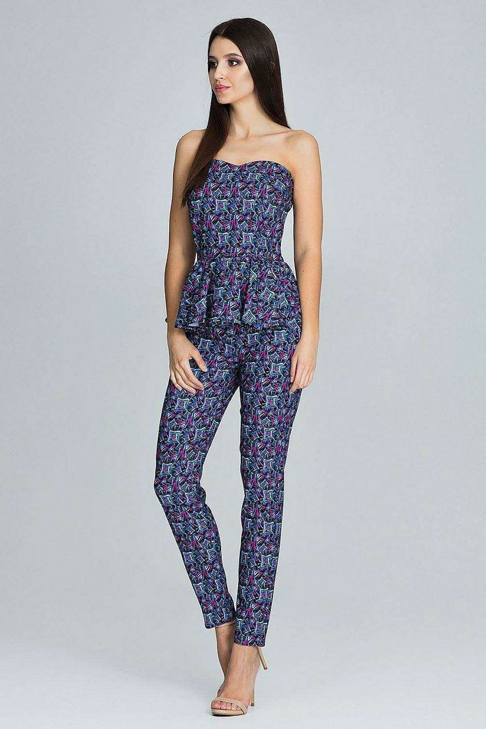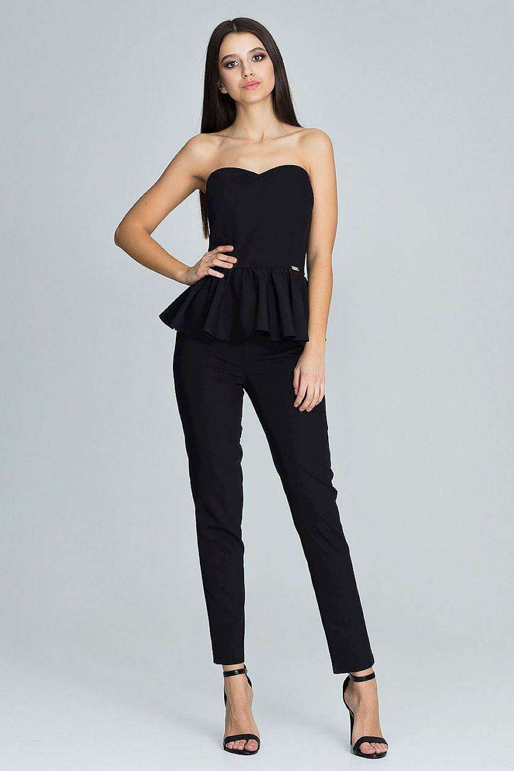 Elegant Frilled Corset with Tailored Trouser Ensemble