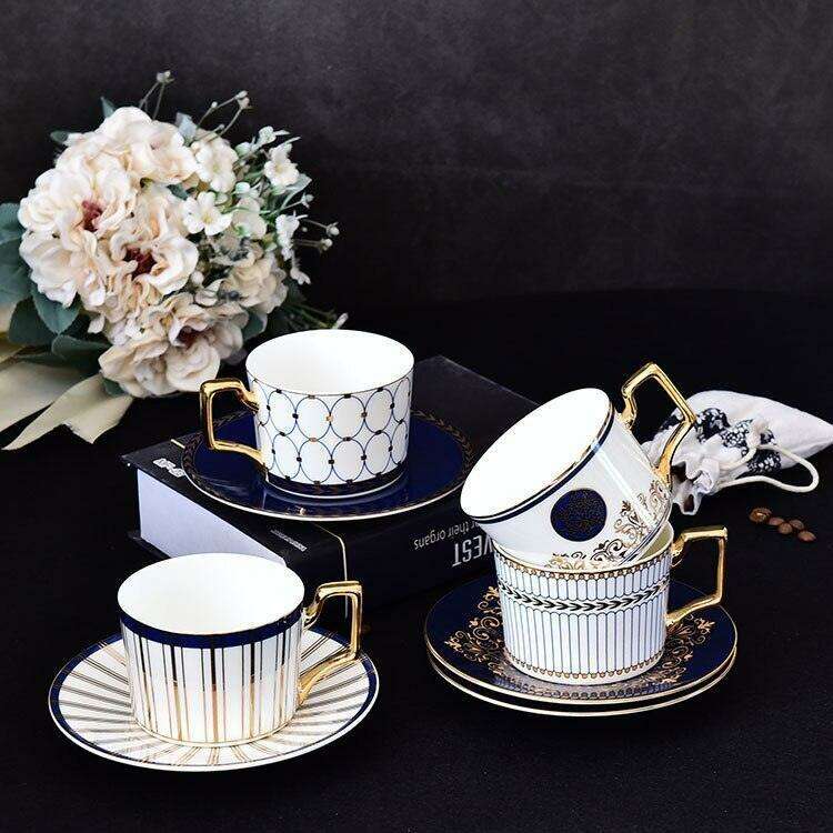 화려한 금 손잡이 도자기 차와 커피 컵 세트