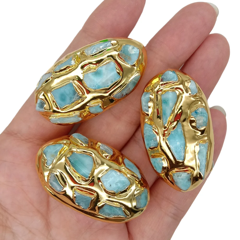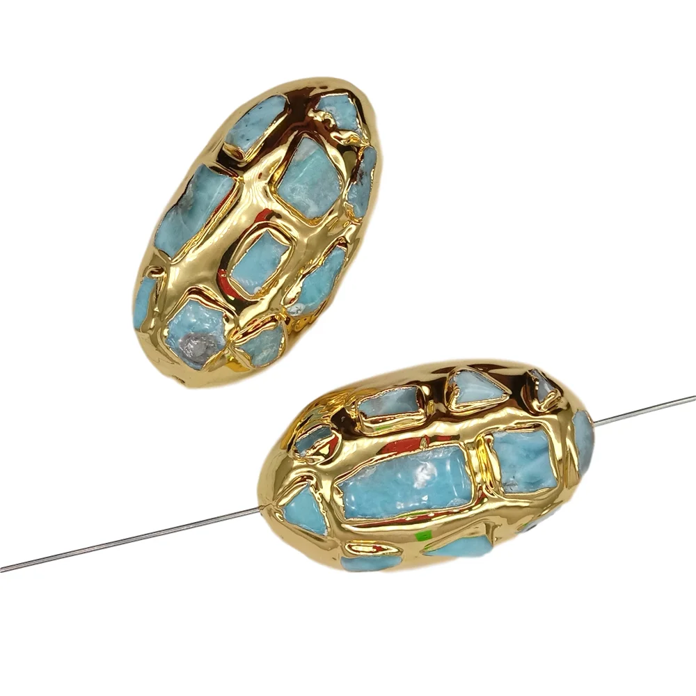 우아한 금도금 천연 블루 라리마 스톤 비즈 5개로 창의력에 빠져보세요. 이 비즈는 귀하의 주얼리 디자인에 매력과 정교함을 더하기 위해 세심하게 제작되었습니다.