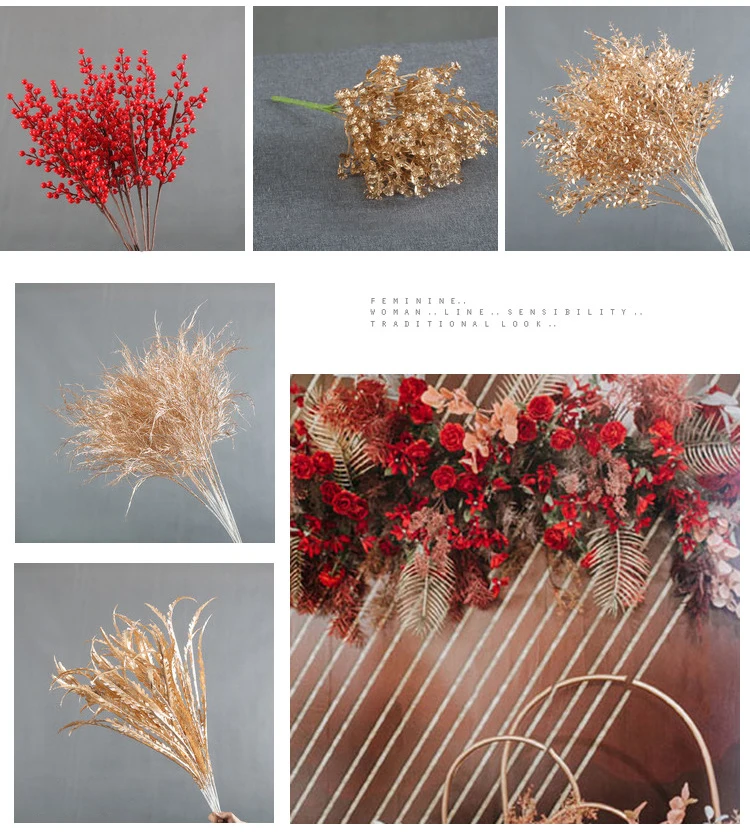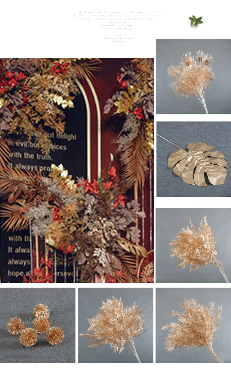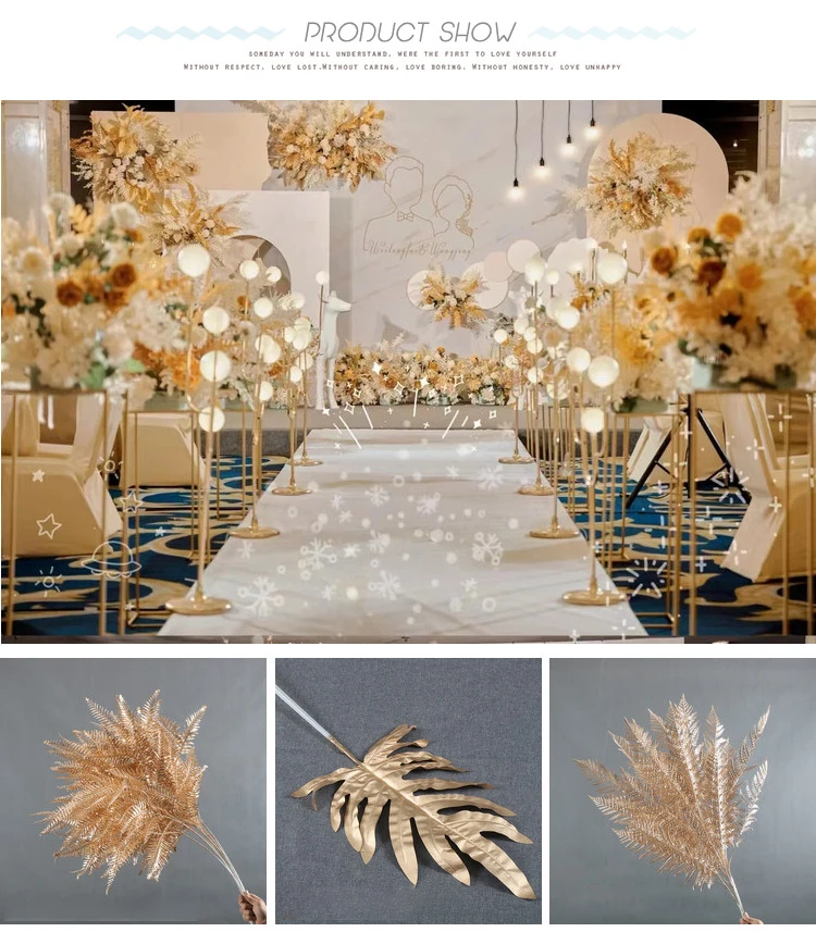 인공 황금 식물 메이플 리프 크리스마스 장식 홈 거실 데스크 장식 파티 웨딩 홀리데이 꽃꽂이