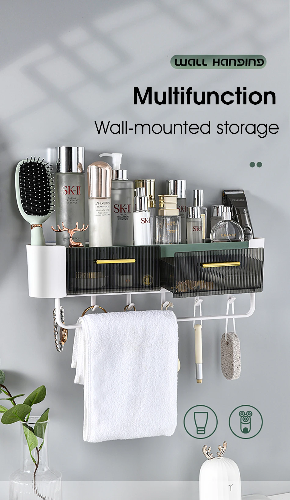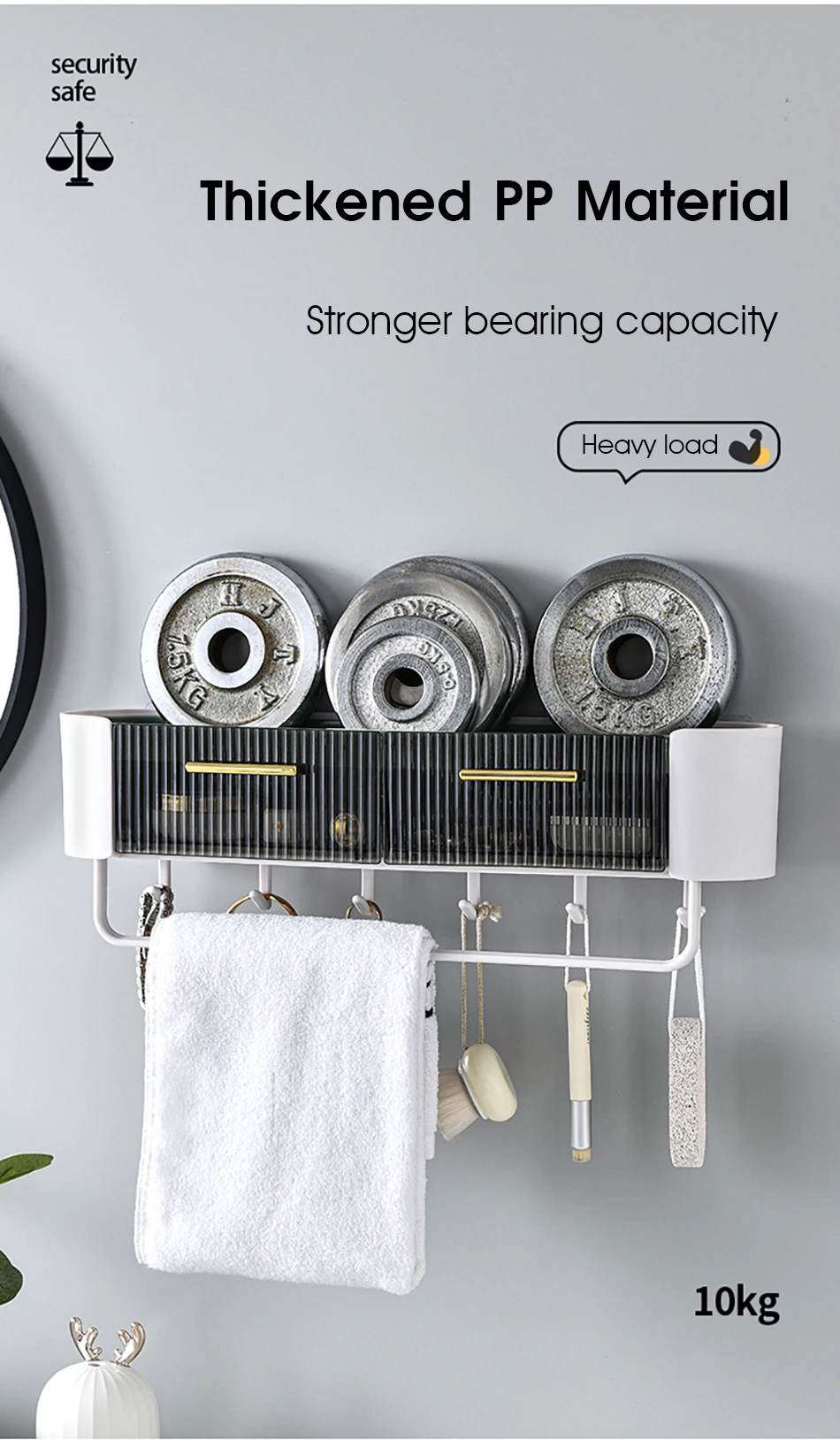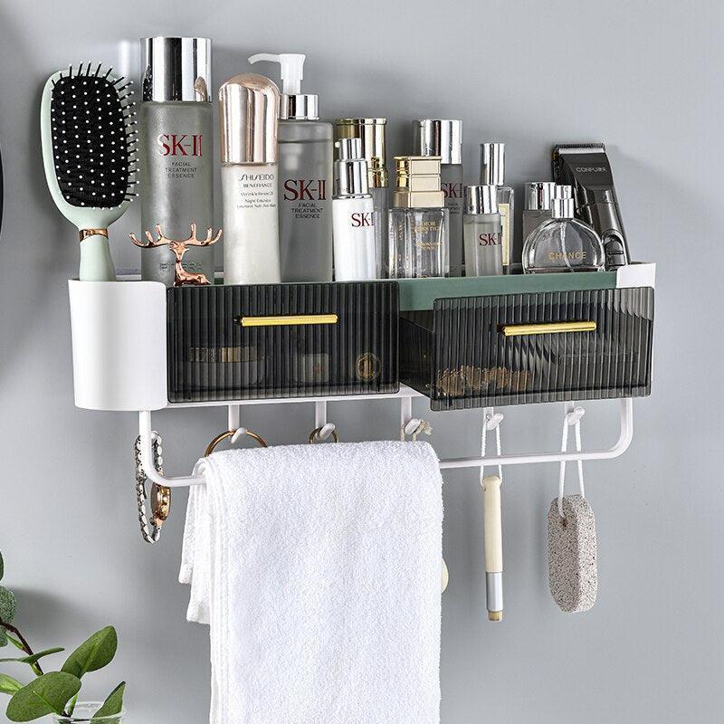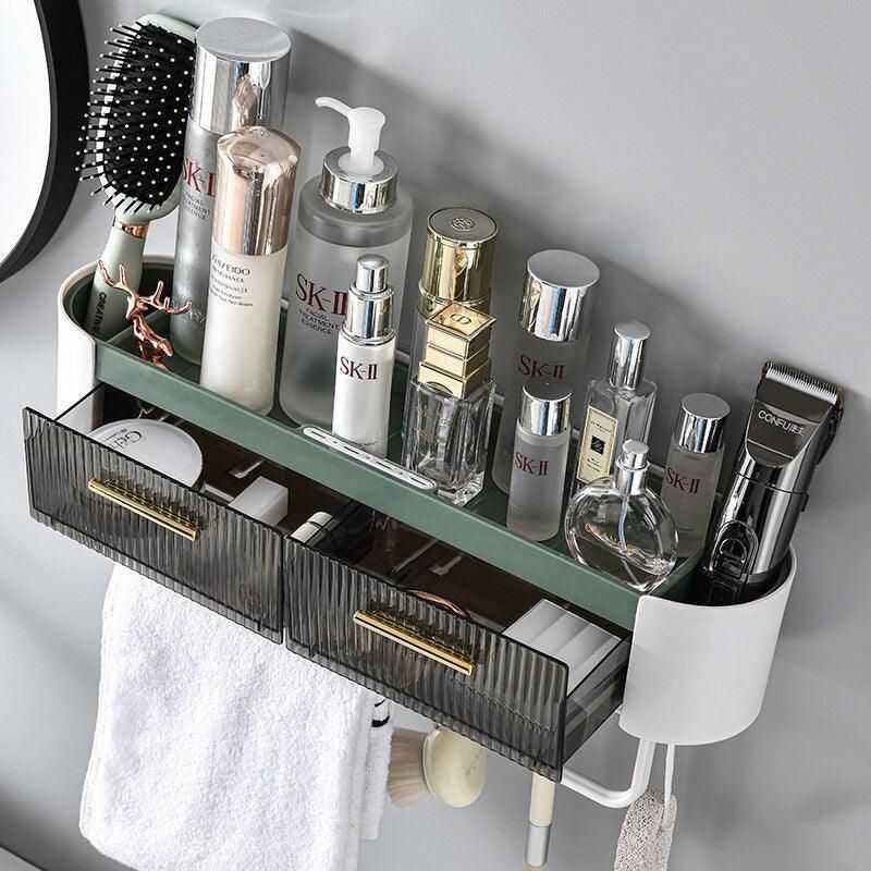 서랍 선반, 후크, 타월 바, 아로마테라피 그루브가 있는 벽걸이형 스토리지 랙 - 욕실 및 주방 정리함, 그레이/그린