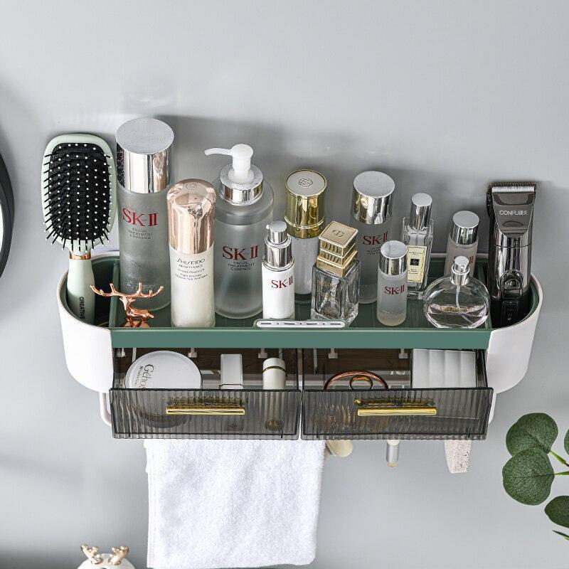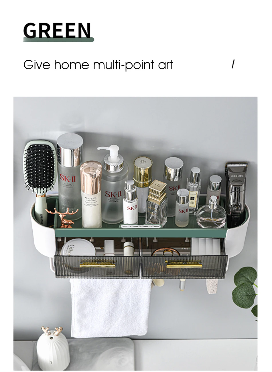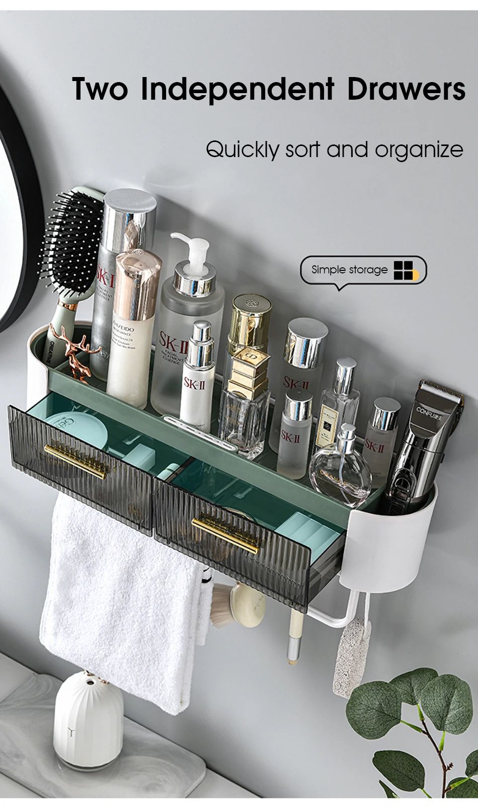 서랍 선반, 후크, 타월 바, 아로마테라피 그루브가 있는 벽걸이형 스토리지 랙 - 욕실 및 주방 정리함, 그레이/그린