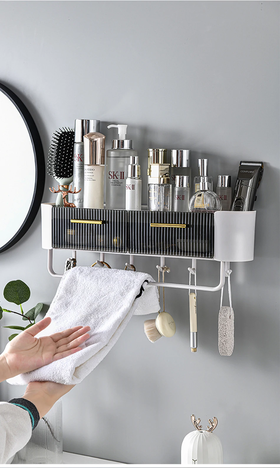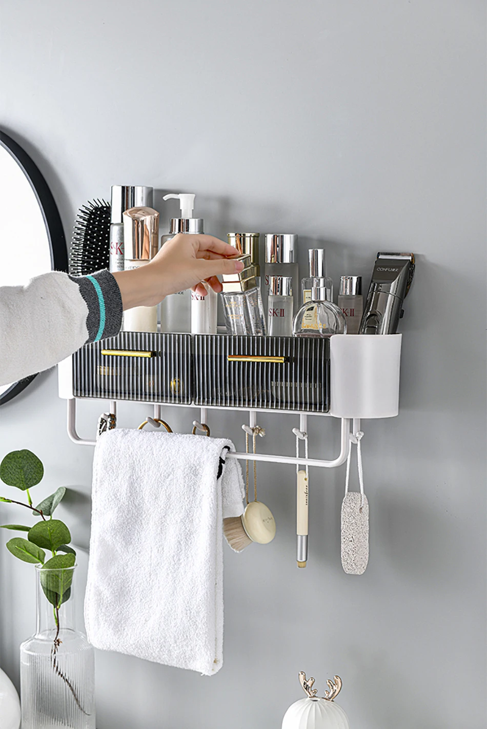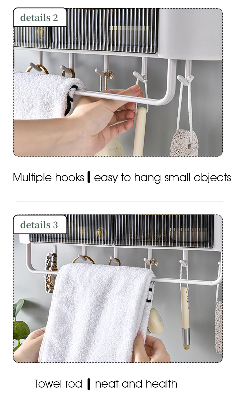 - 후크, 수건걸이, 아로마테라피 홈이 있는 다기능 보관함