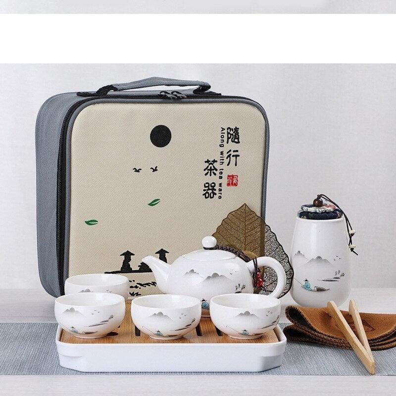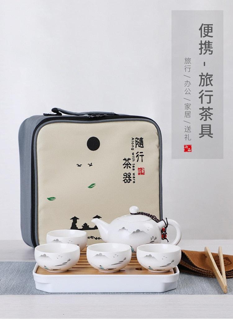 세라믹 주전자 한 냄비 네 컵 야외 여행 쿵푸 주전자 토트 백 여행 컵 세트 Tcup 선물 차 세트 중국 차 세트 디자이너