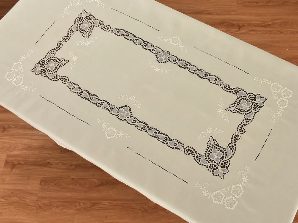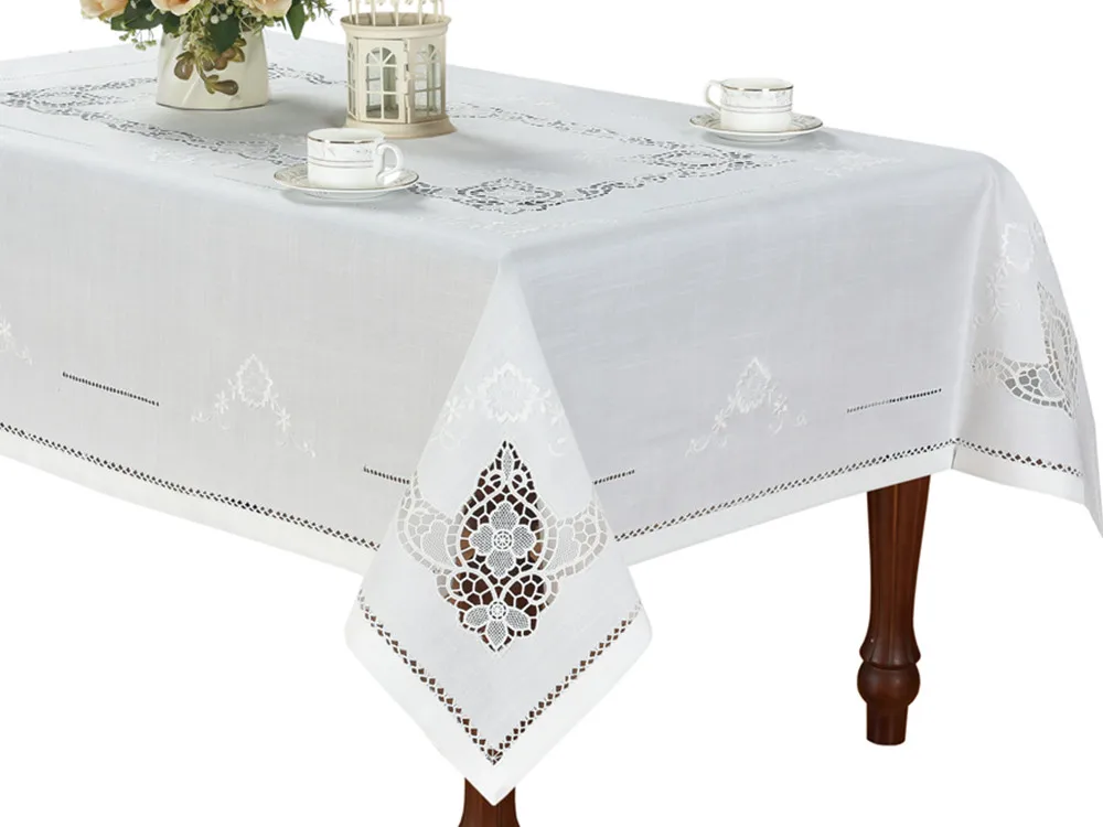 클래식 헴스티치 식탁보, 특수 처리된 폴리에스테르 면, 리넨 룩 & 워셔블, 화이트/샴페인 색상, 정사각형/직사각형