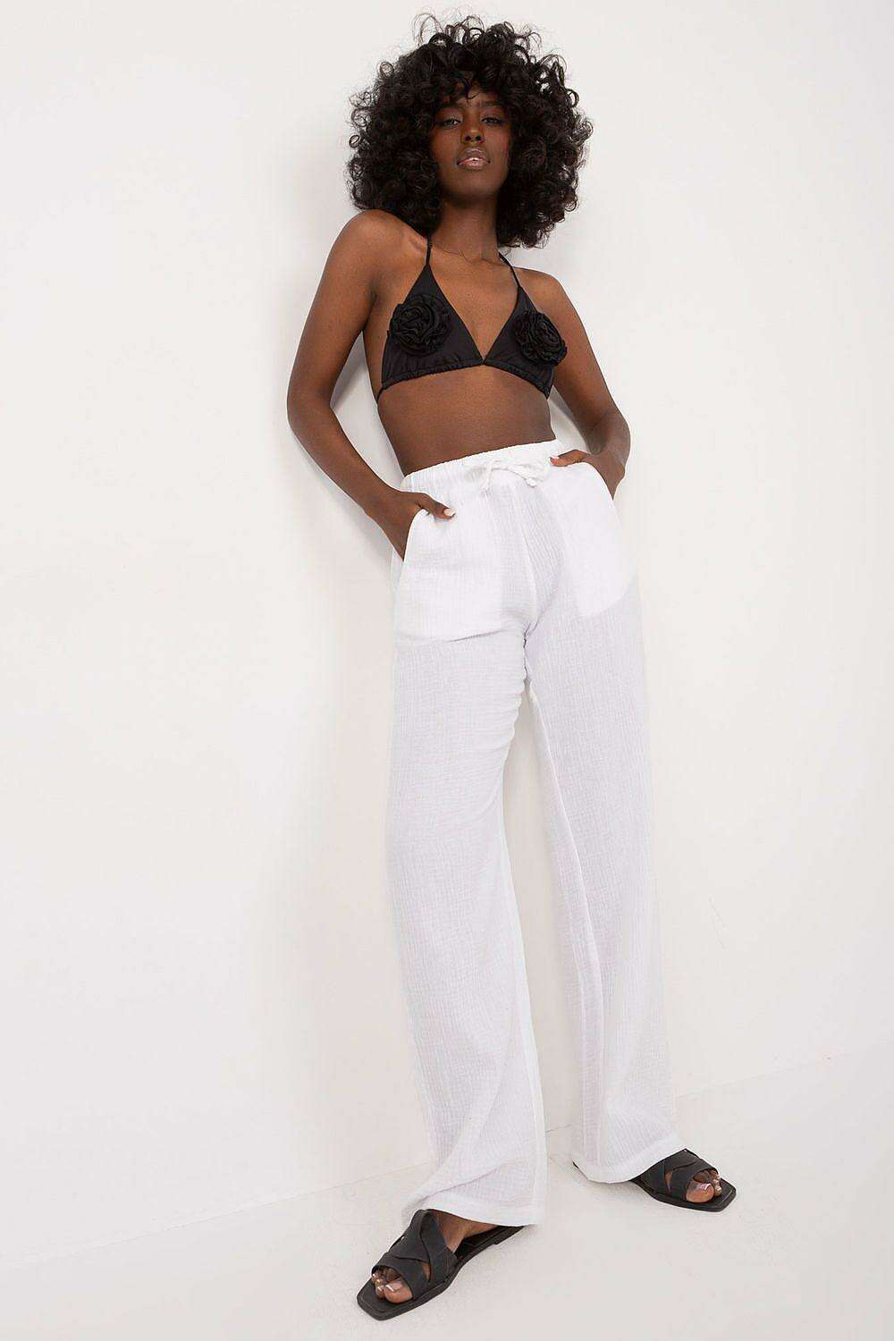 Elegant High-Waisted Muslin Cotton Trousers for Women