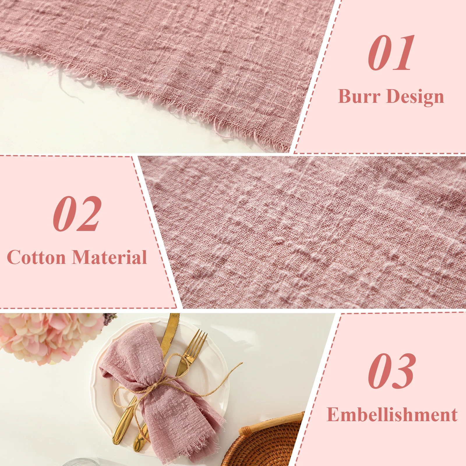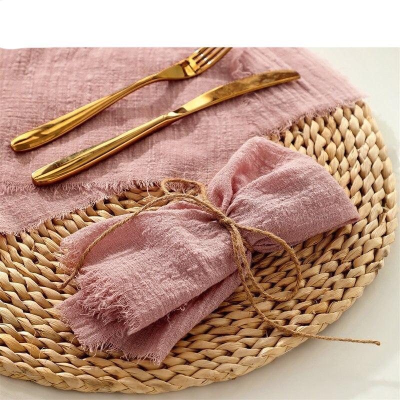 제품 취급 조언: 이 냅킨은 섬세한 린넨과 면 소재로 인해 조심해서 다루십시오. 거친 취급을 피하시고, 얼룩이 생긴 경우에는 중성세제로 가볍게 닦아주세요.