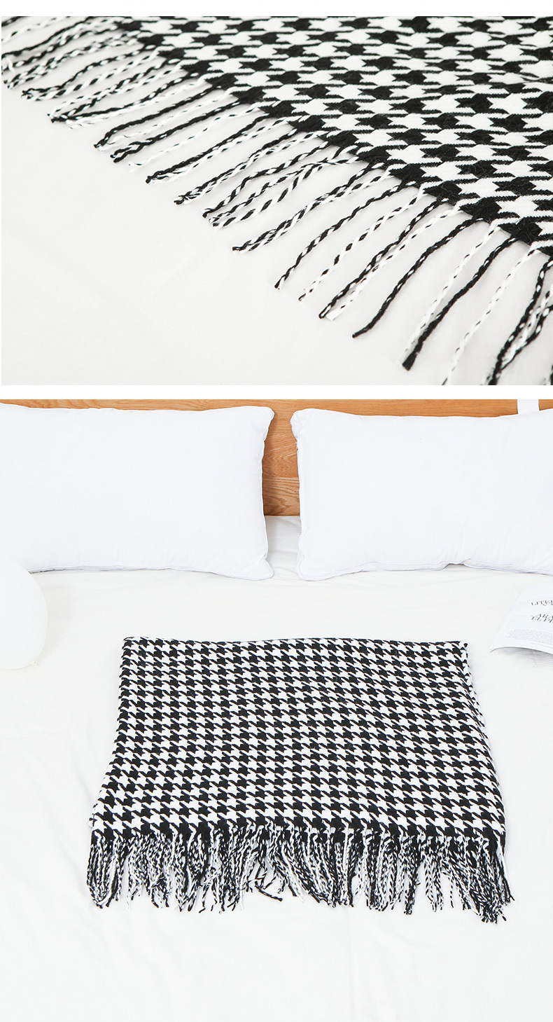 클래식 Houndstooth 체크 무늬 면 니트 던지기 담요 - 부드럽고 아늑한 침대 또는 소파 장식