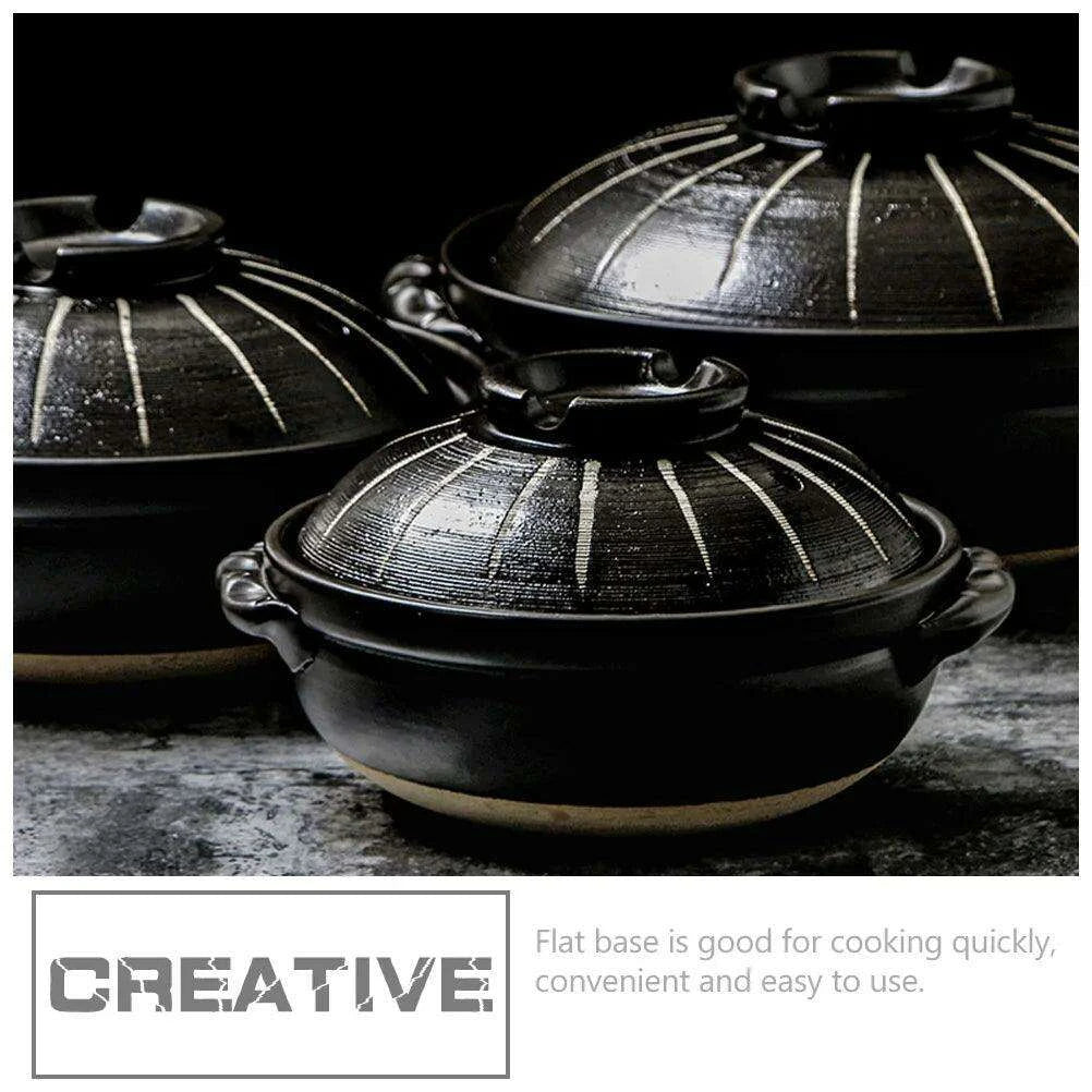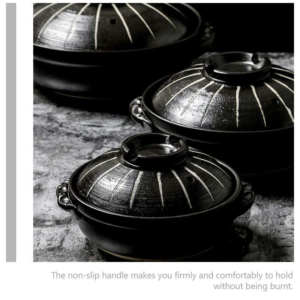 Japanese Ceramic Stovetop Soup Pot - Versatile Black 2.6L Cookware