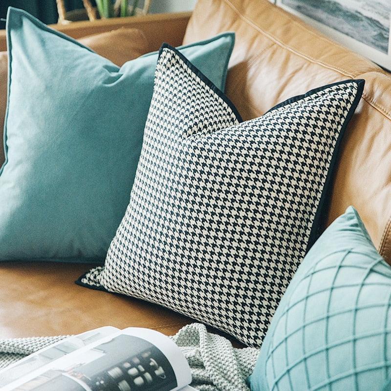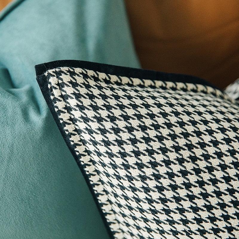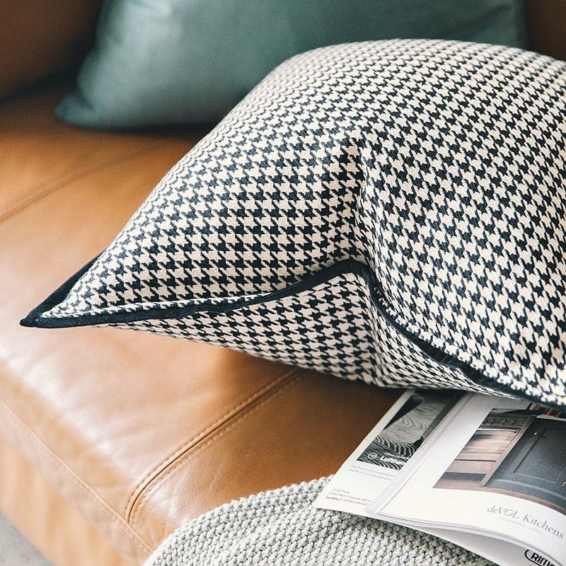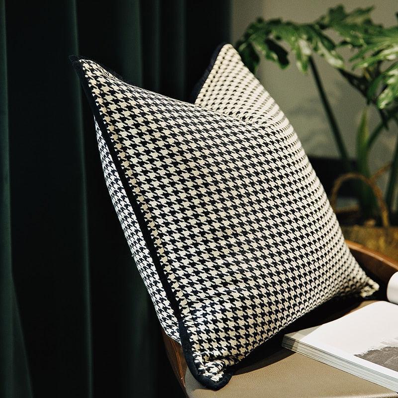럭셔리하고 모던한 심플한 흰색과 검정색 물떼새 격자 쿠션 | 홈 장식 쿠션 커버