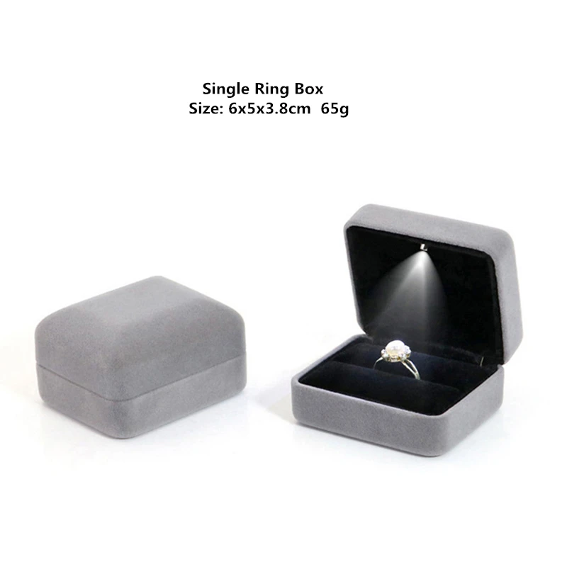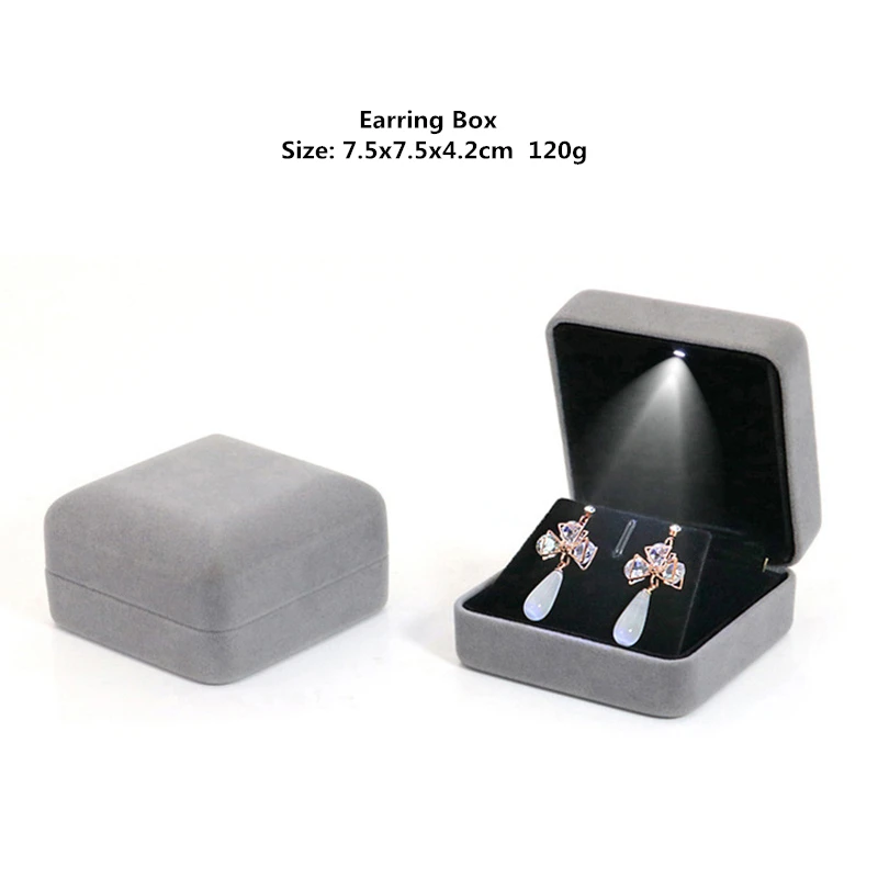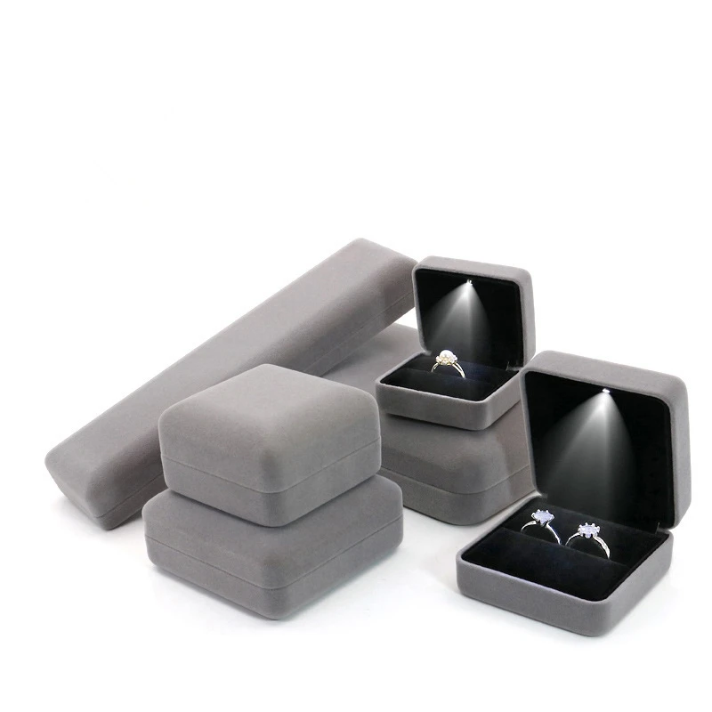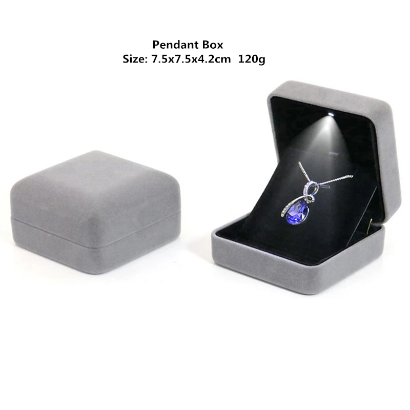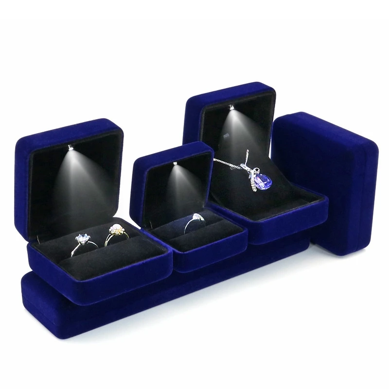 인기있는 베스트 셀러 벨벳 LED 보석 선물 상자 결혼 반지 펜던트 귀걸이 보석 디스플레이 사용자 정의 로고와 포장 케이스