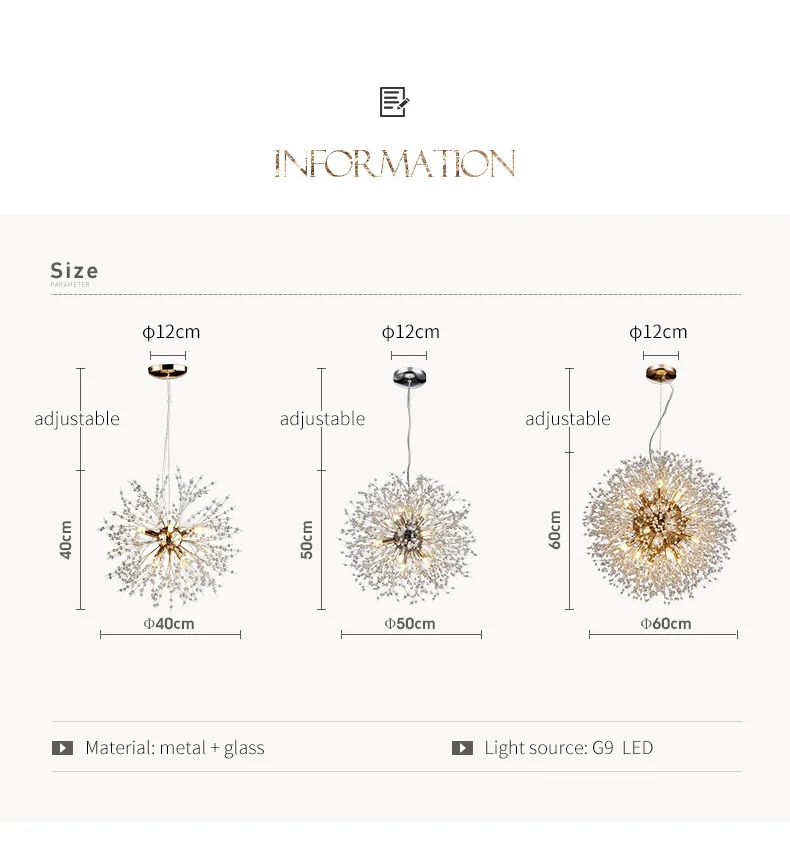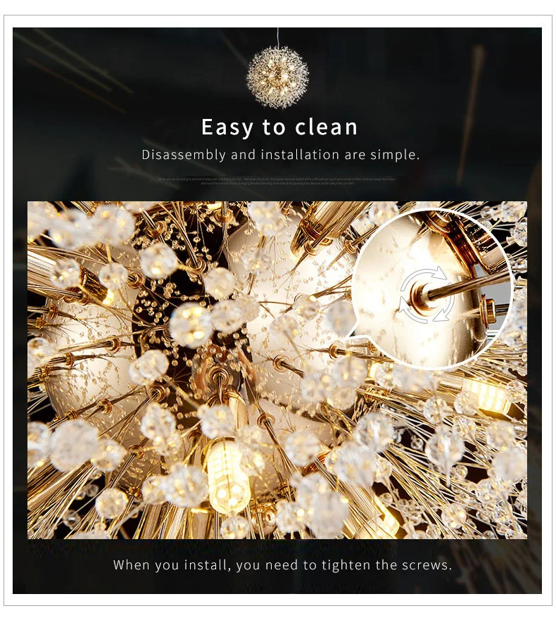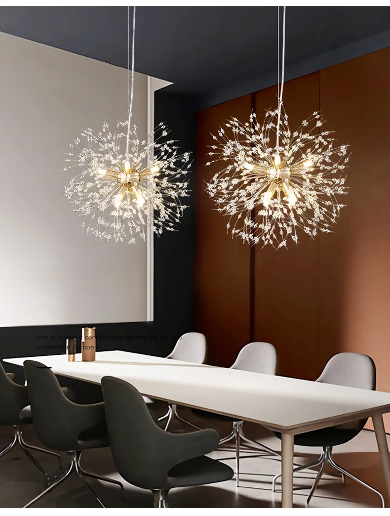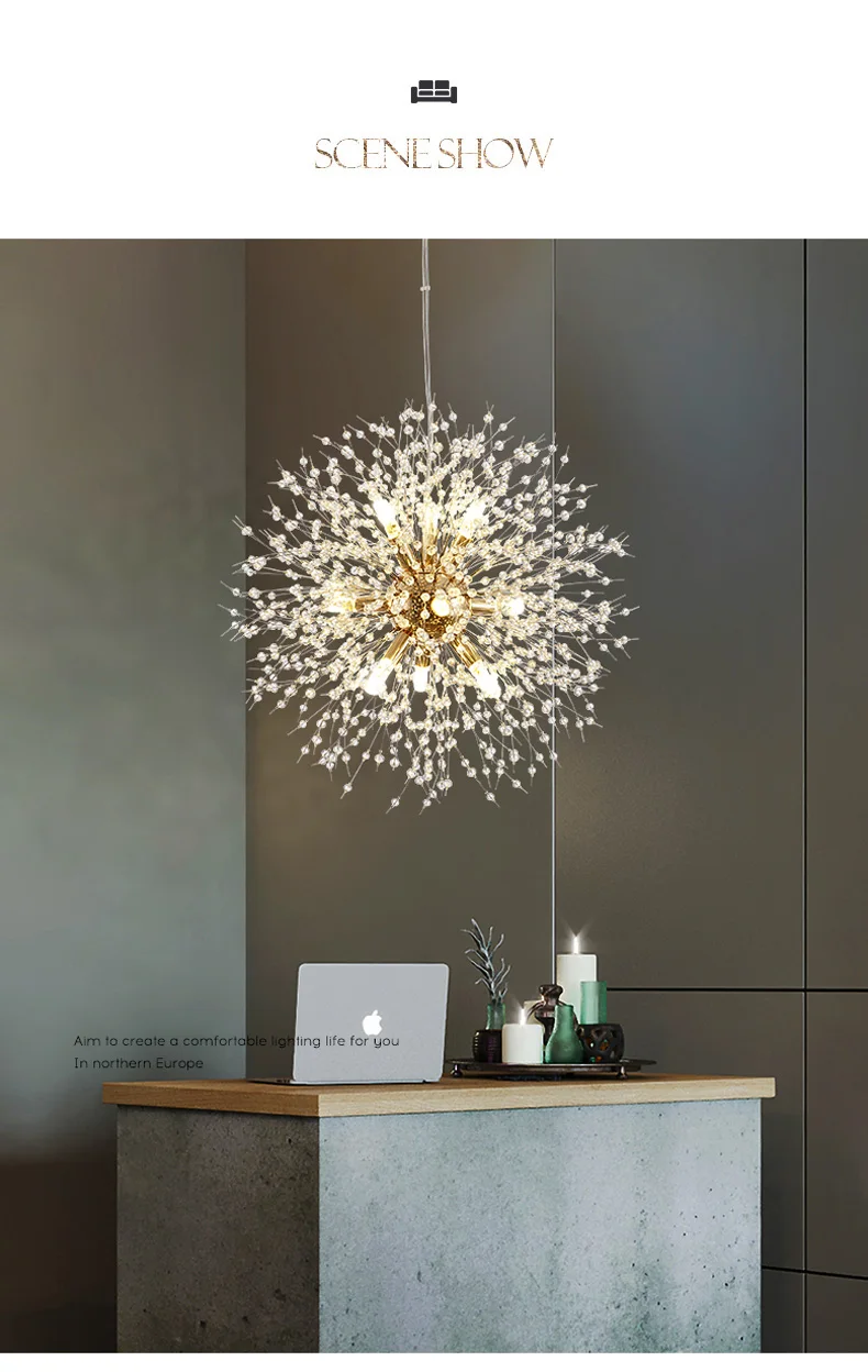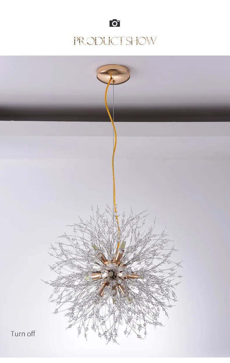 FKL 현대 크리스탈 민들레 샹들리에 조명 LED 실내 홈 샹들리에 거실 바 다이닝 룸 침실 인테리어 조명