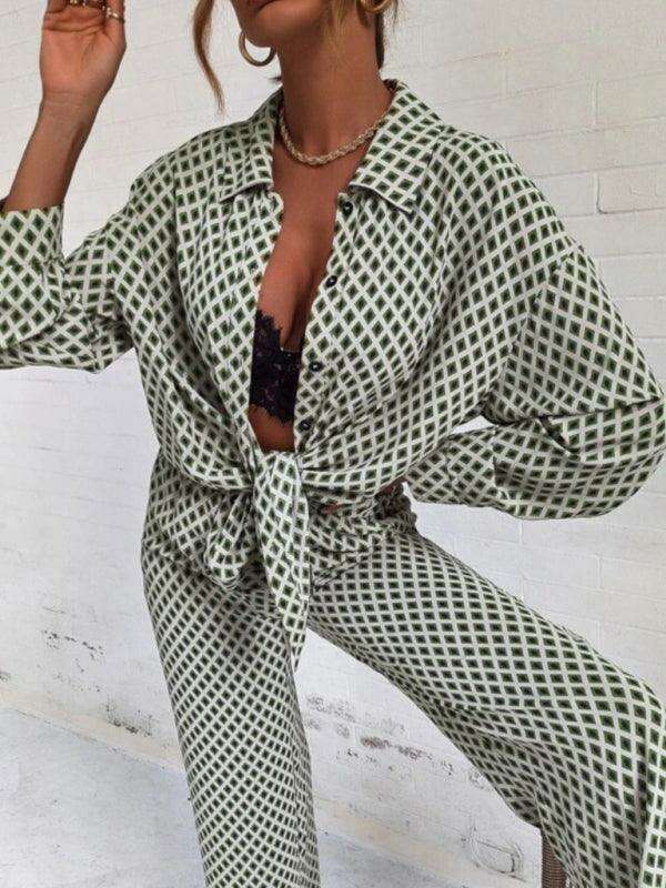 Chic Off-Shoulder Printed Two-Piece Women's Suit Set - Fashionable Ensemble