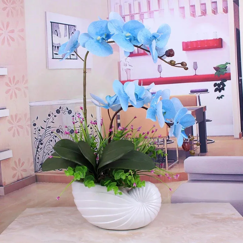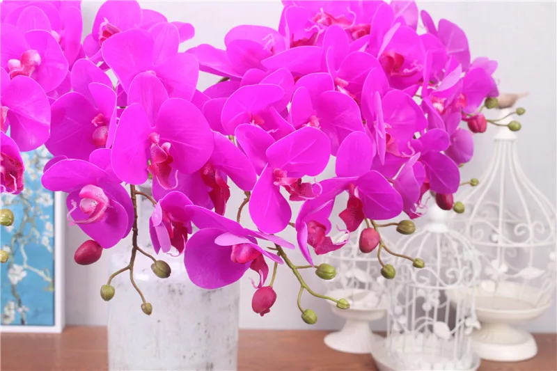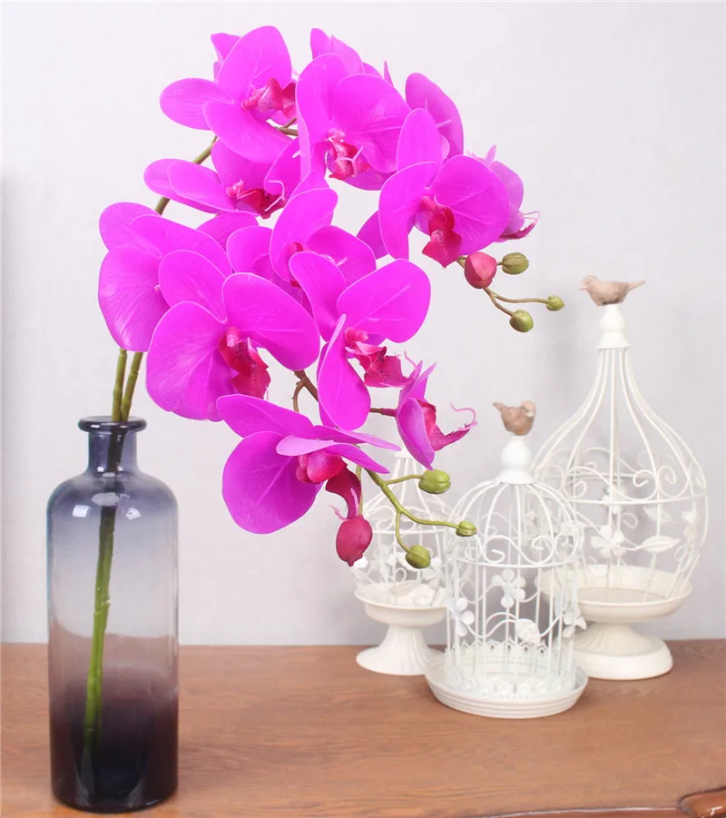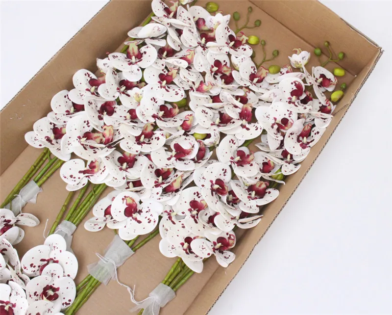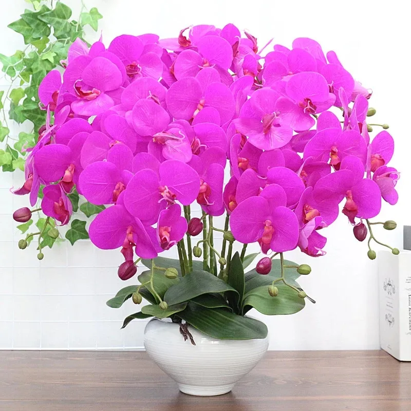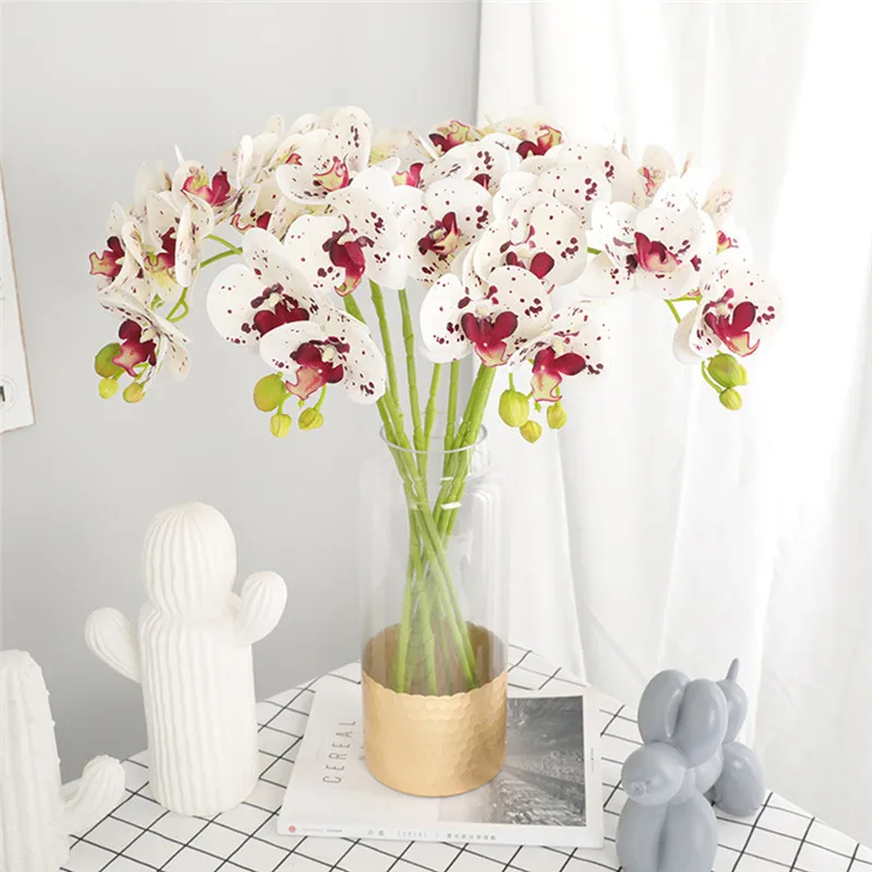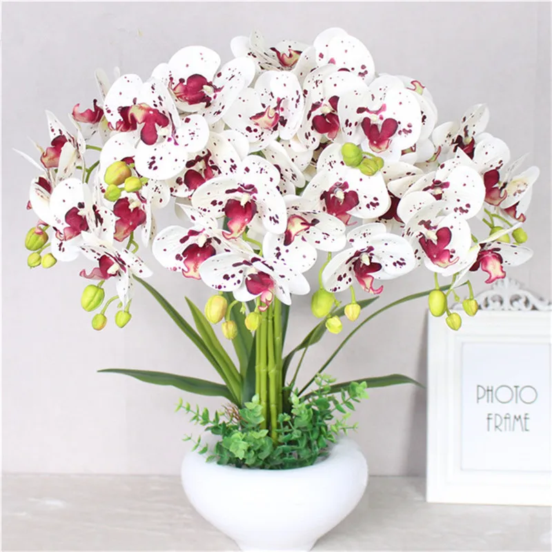 고품질 진짜 터치 pu 난초 호 접 잎 인공 꽃 화분에 심은 식물 결혼식 파티 마이크로 풍경 홈 decoratio