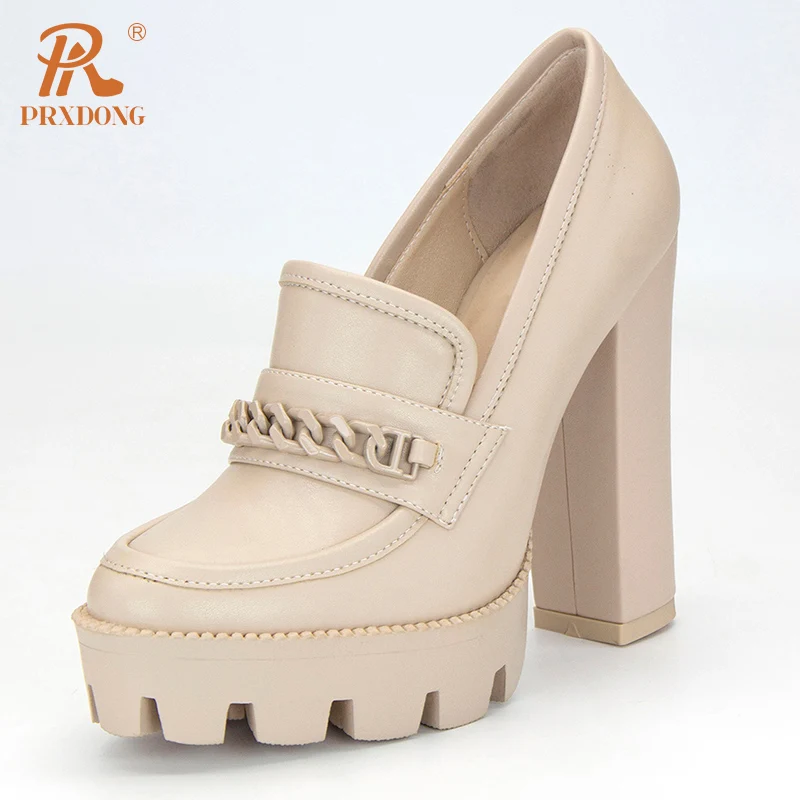 PRXDONG 새로운 패션 봄 여름 Qulaity 가죽 스퀘어 하이힐 두꺼운 플랫폼 핑크 그린 드레스 파티 웨딩 여성 펌프