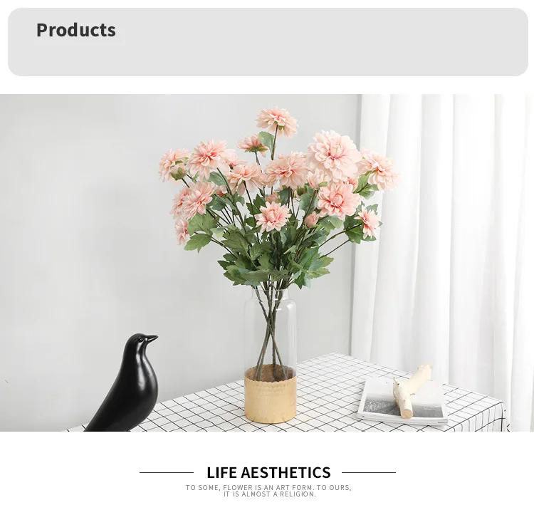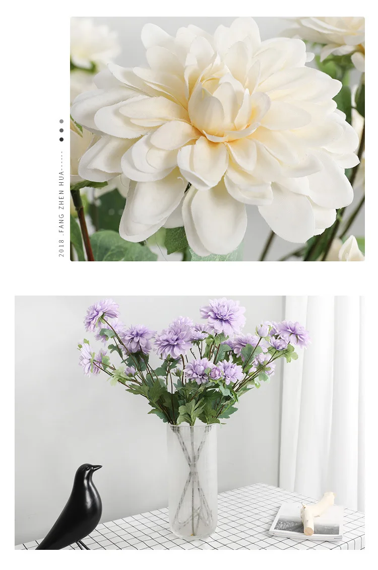 6 머리 대형 달리아 Fleur Artificielle 인공 실크 꽃 핑크 웨딩 장식 Mariage 룸 장식 플로레스 artificiales