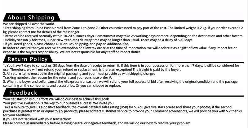 Enjoy worldwide shipping with same-day dispatch on eligible items and 3–7 business days for most regular orders. Delivery time depends on the shipping method you choose, and the estimated arrival date is shown on each product page.