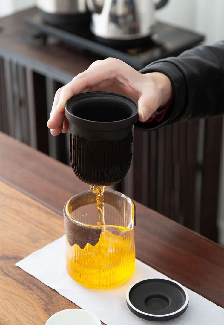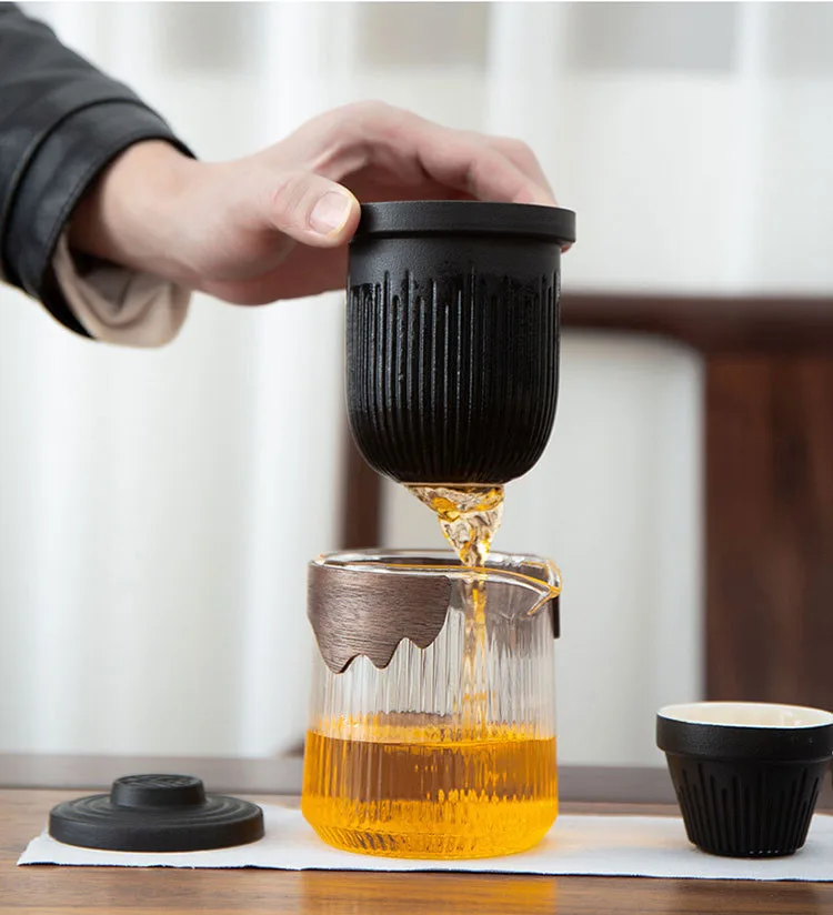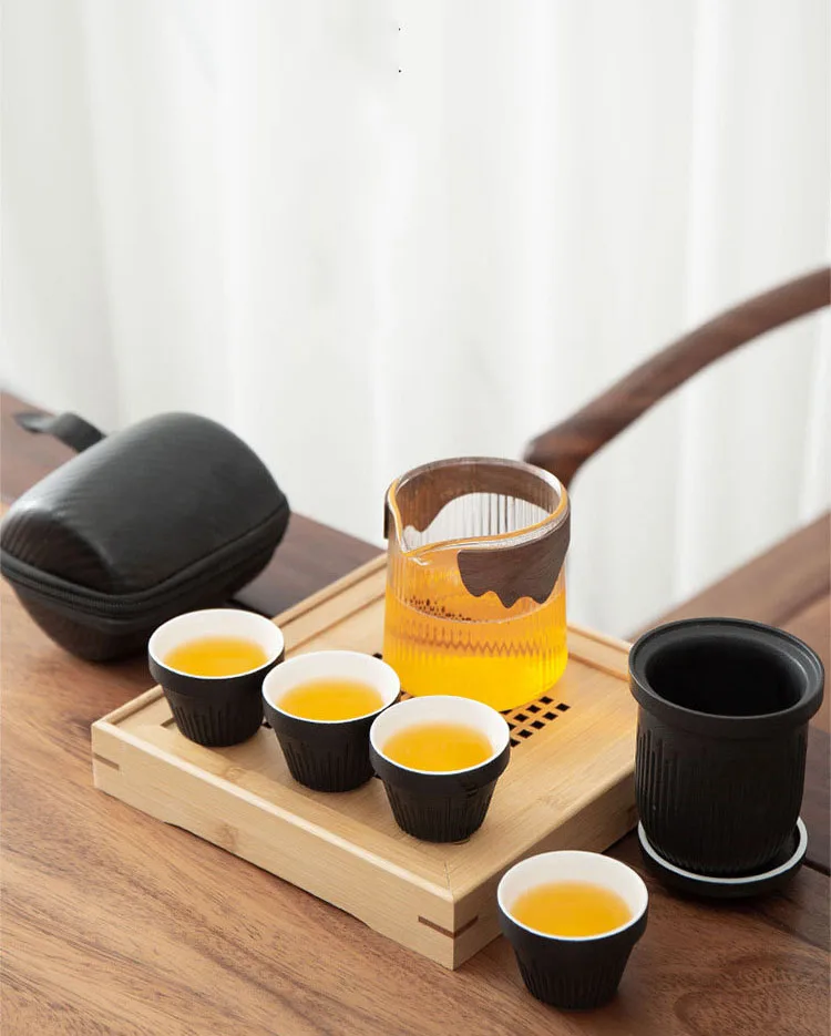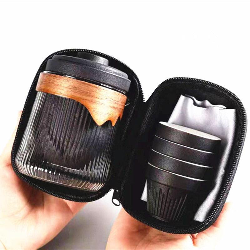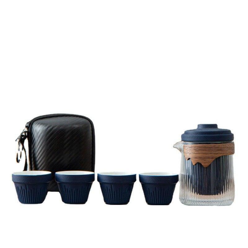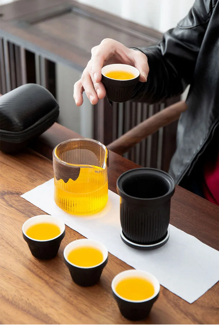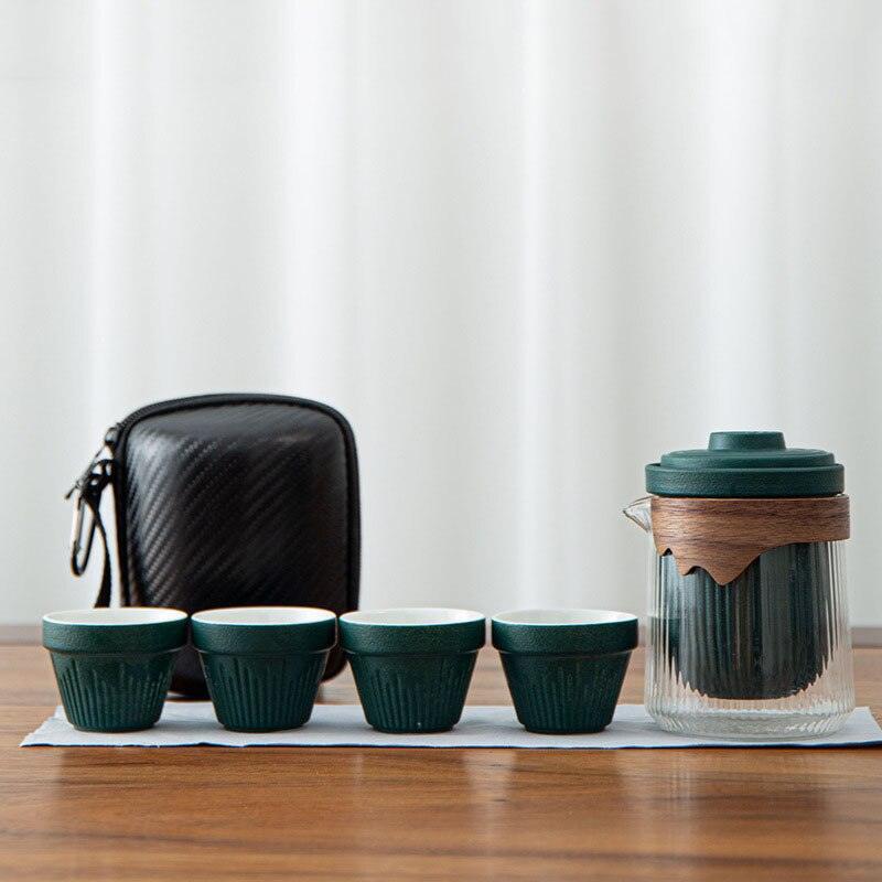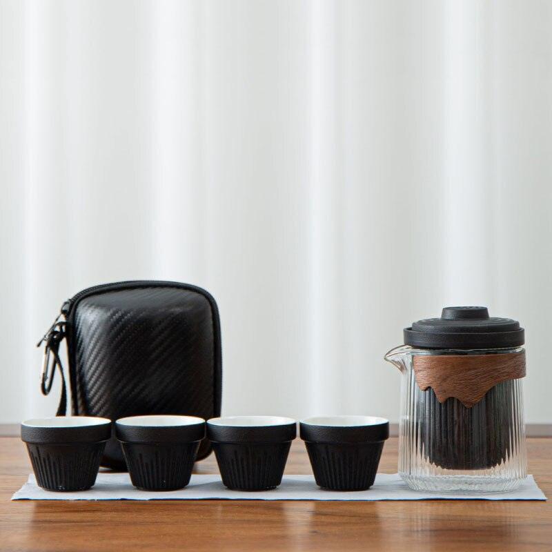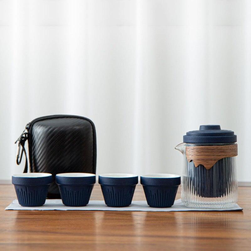 세라믹 여행 쿵푸 차 세트 차 도구 여행 가방 한 주전자 4 찻잔 도자기 유리 차 주전자 컵 세트 비즈니스 선물