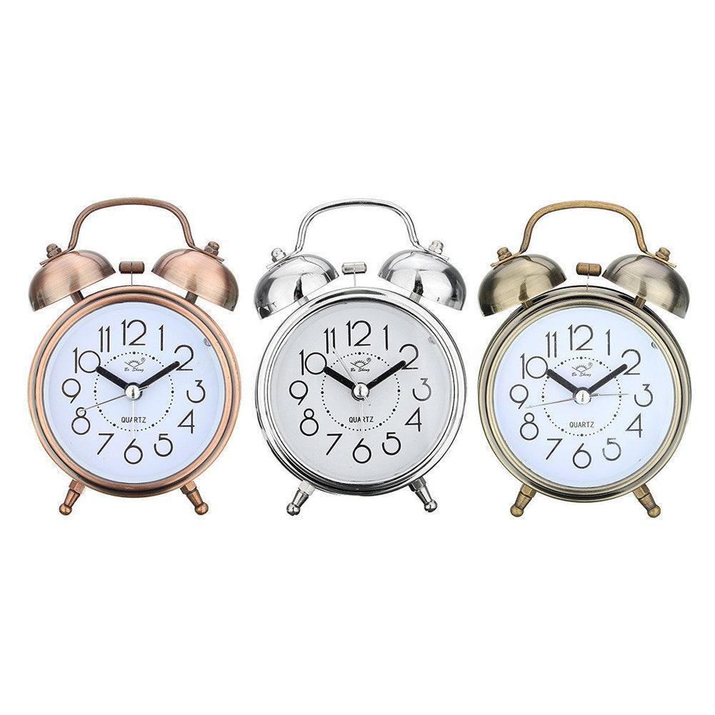 클래식 사일런트 더블 벨 쿼츠 무브먼트 침대 옆 테이블 레트로 미니 알람 시계
