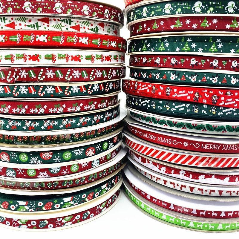 5 야드 10mm 크리스마스 리본 - 축제용 인쇄 그로그랭 리본