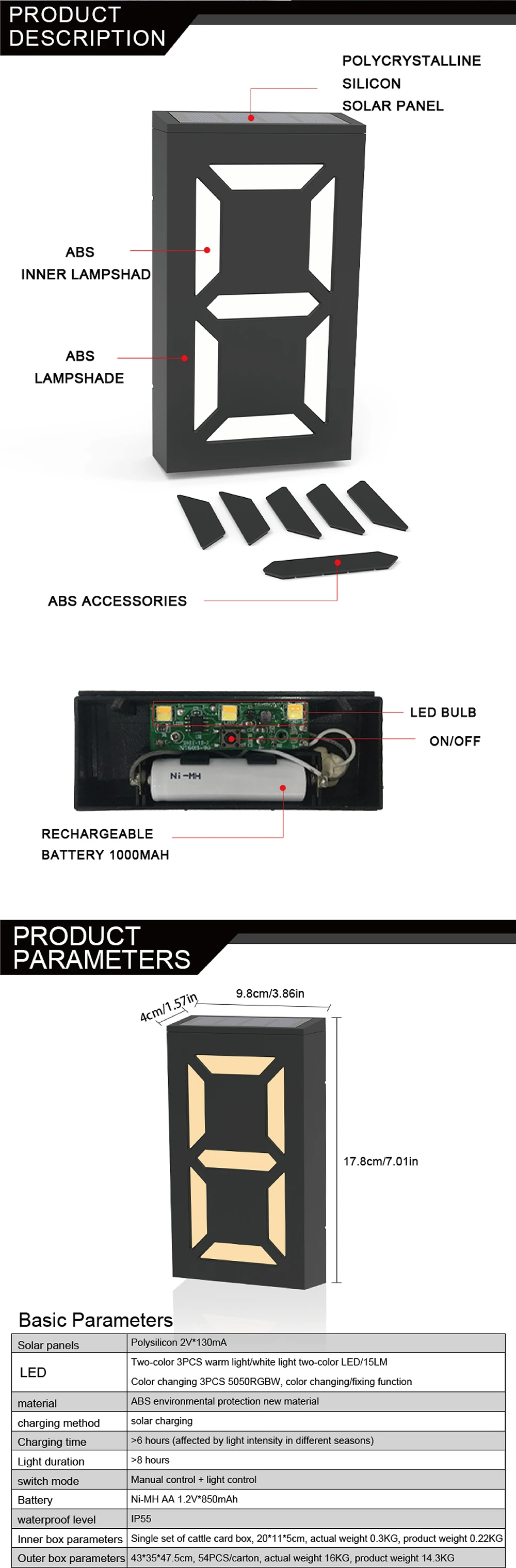 【설치가 용이함】배선 없이 빠르고 쉽게 설치할 수 있습니다. 벽 고정 장치가 포함되어 있습니다. 유지비가 들지 않아 장기간 사용이 가능합니다. 당신의 집을 위한 훌륭한 야외 태양광 주소 표시. 사용하기 전에 뚜껑을 열고 스위프트를 열어야 합니다.