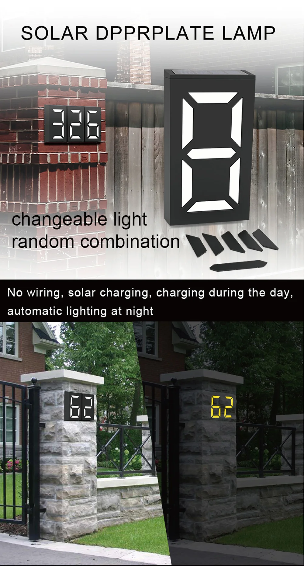 외관 집 번호 Led 태양 접시 램프 야외 집 번호 아파트 정원 문 기호 태양 충전식 조명