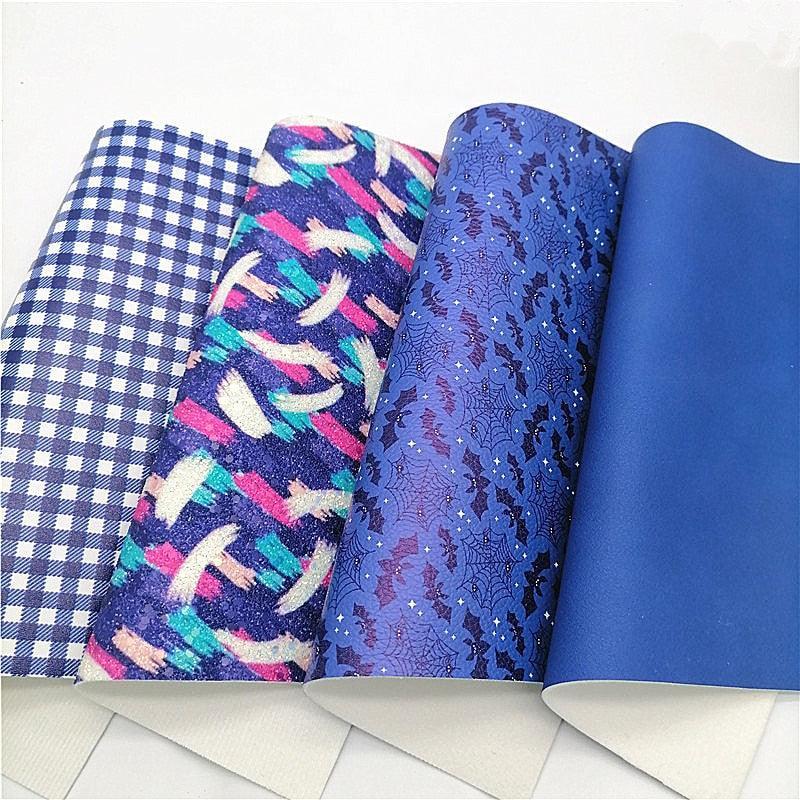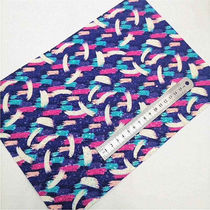 브러시 스트로크 사용자 정의 반짝이 가죽 시트 Plaids Spiderwebs 인쇄 합성 가죽 시트 펠트 다시 DIY 21x29CM KM3595