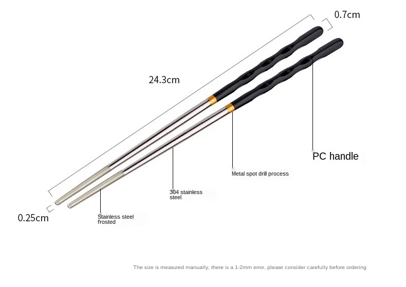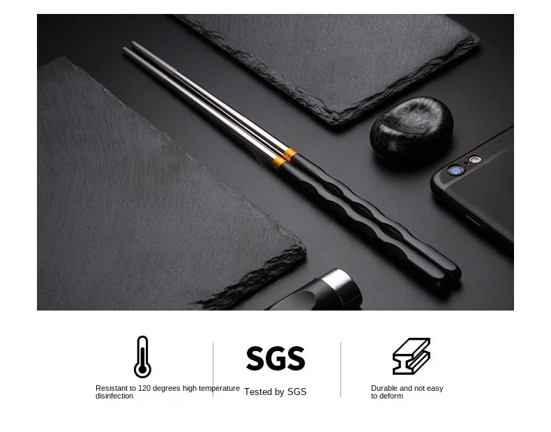 1 쌍 304 가정용 미끄럼 방지 스테인레스 스틸 젓가락 비 변형 젓가락 합금 젓가락 한국 젓가락