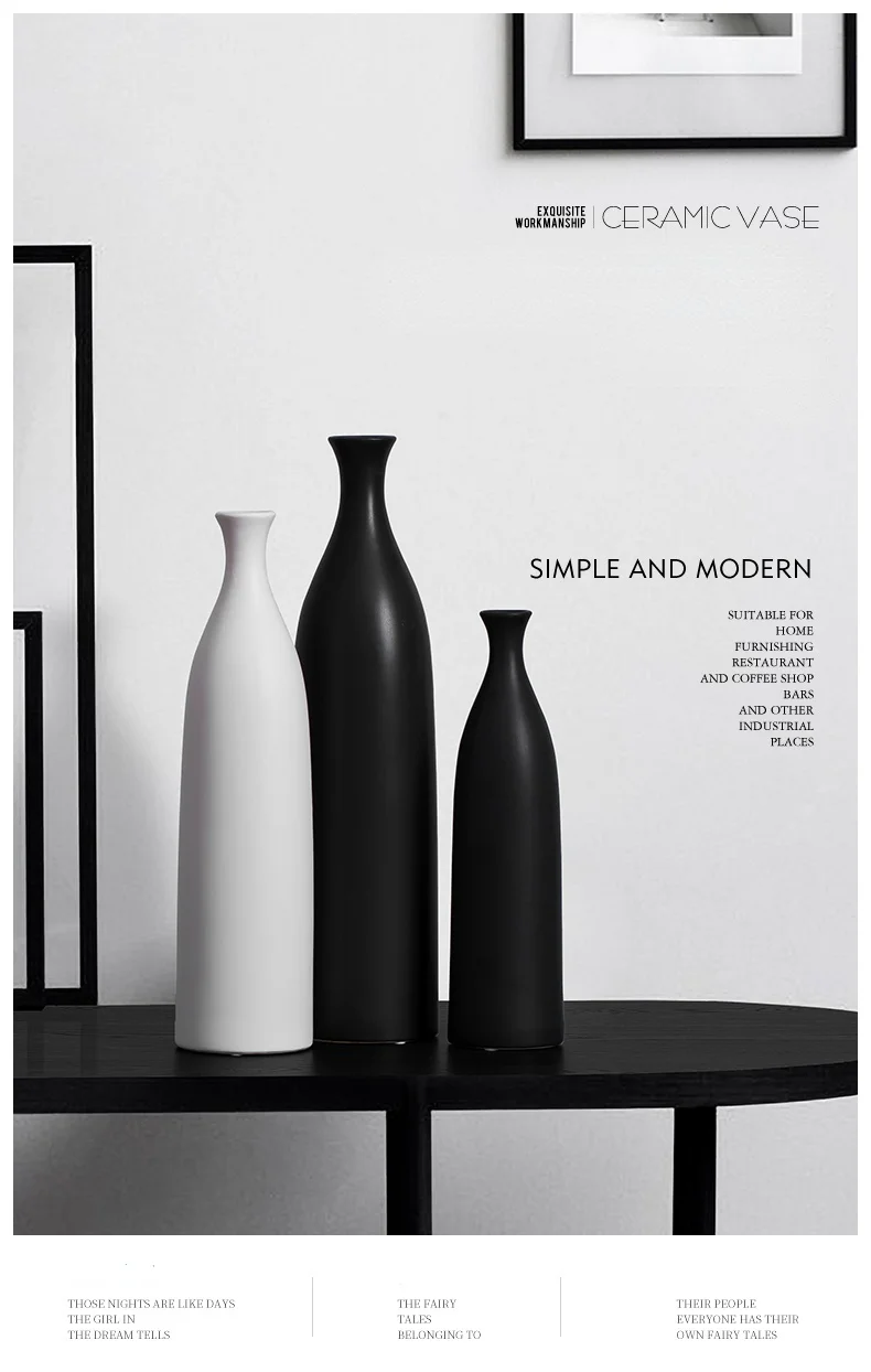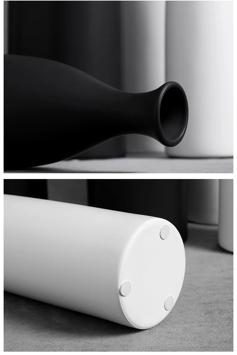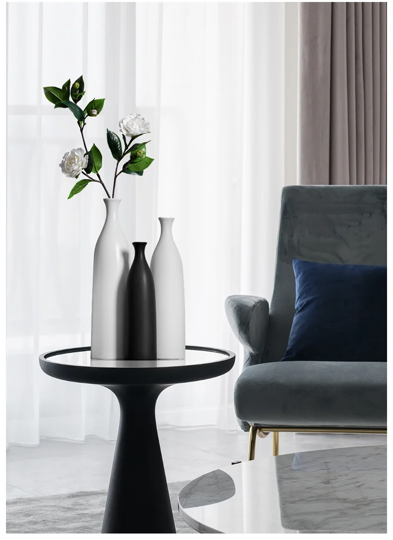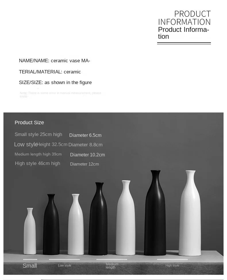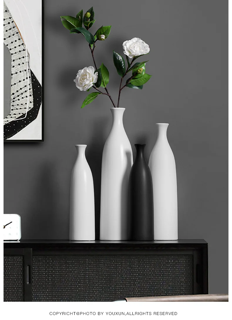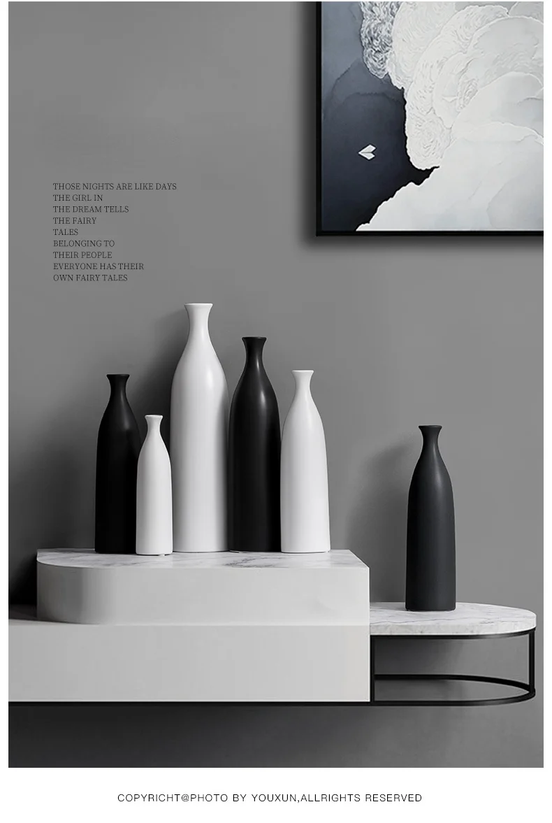 긴 목과 얇은 입 꽃꽂이 병이 있는 검은색 세라믹 꽃병