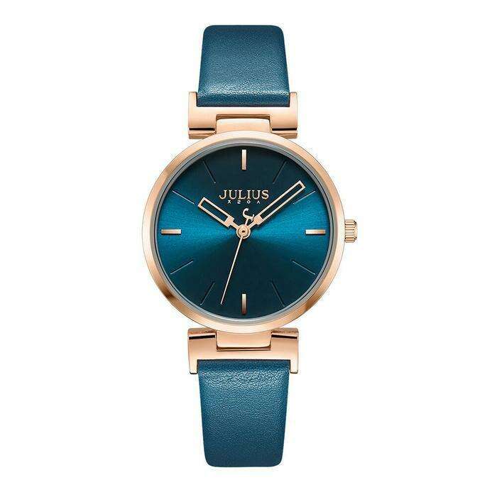 The JULIUS Women's Blue Leather Strap Timepiece is powered by a Japan Miyota 2035 movement, ensuring not only style but also precision timekeeping with a remarkable 3-year battery life. Elevate your look and make a lasting impression with this timeless accessory that complements your style effortlessly. Choose the JULIUS watch for an unmatched combination of elegance, durability, and functionality.