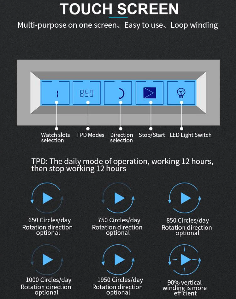 Mabuchi 모터 및 LCD 터치 스크린이 포함된 고급 Botanica 시계 와인더 금고