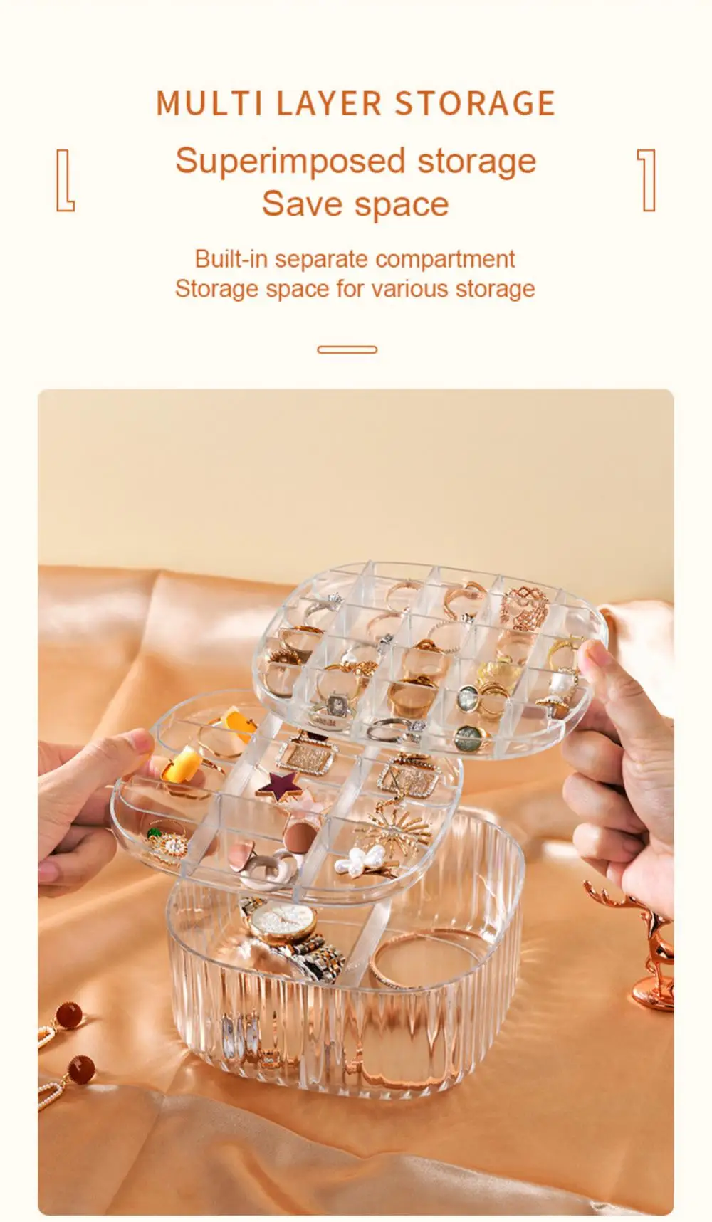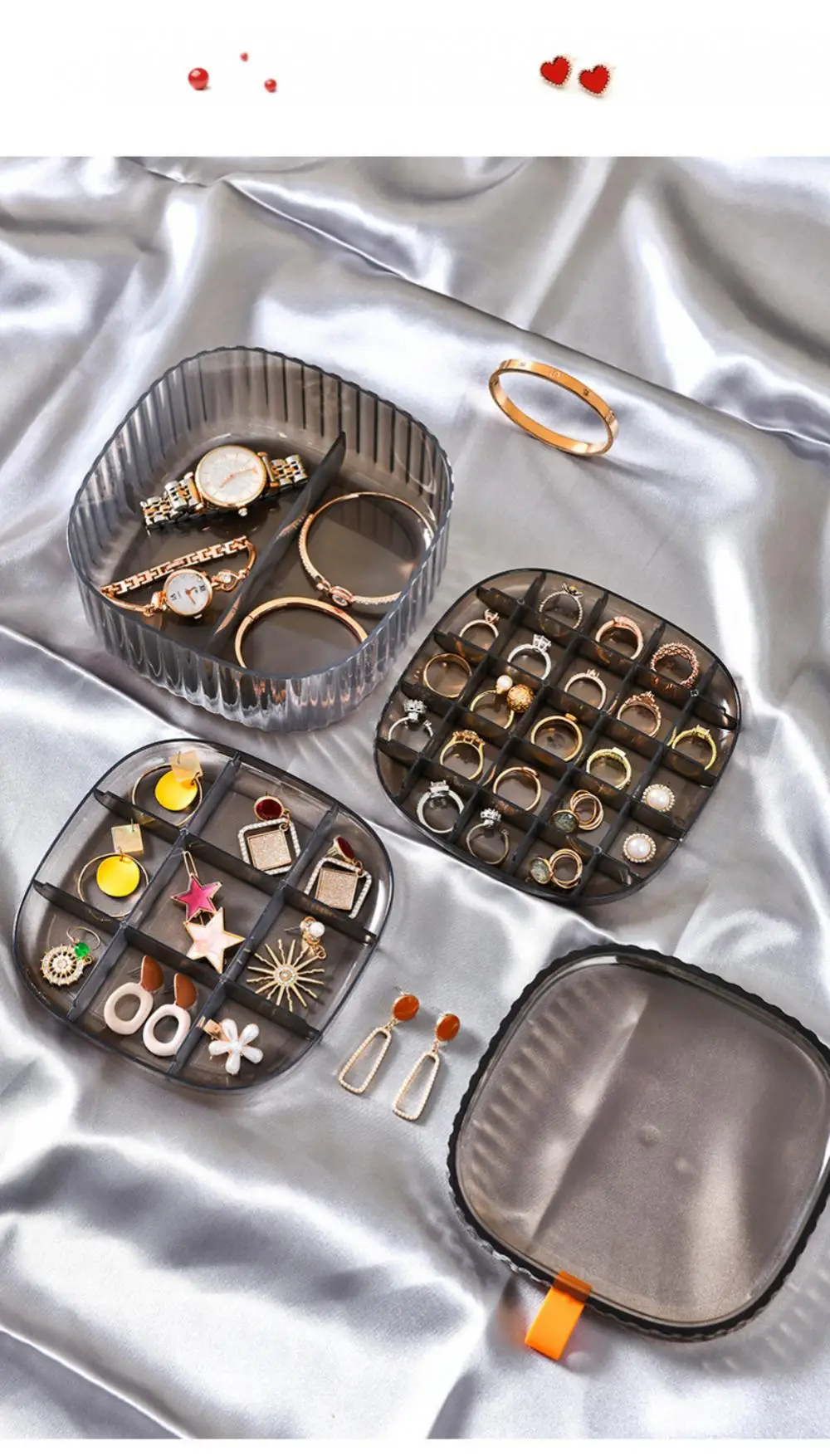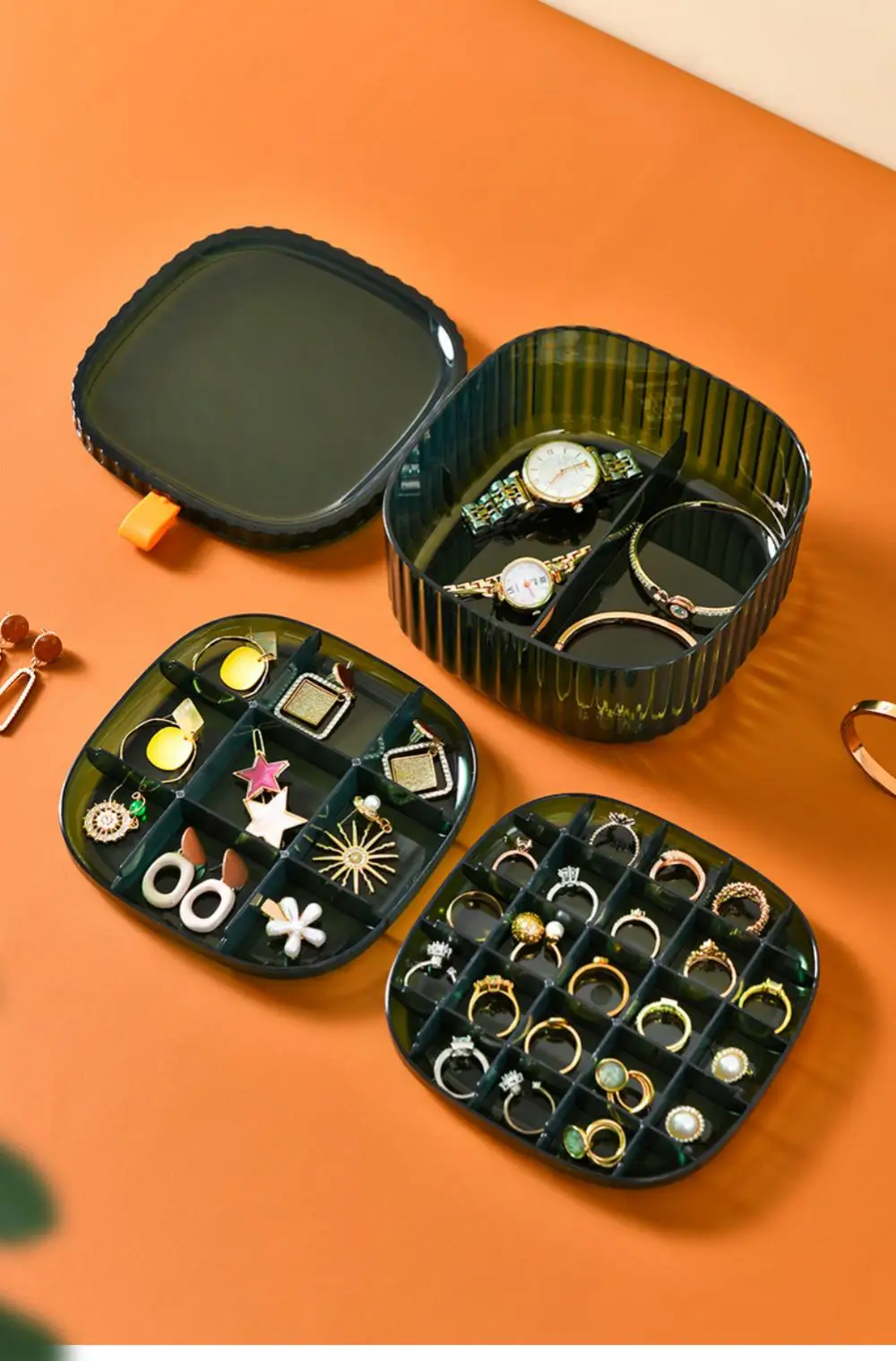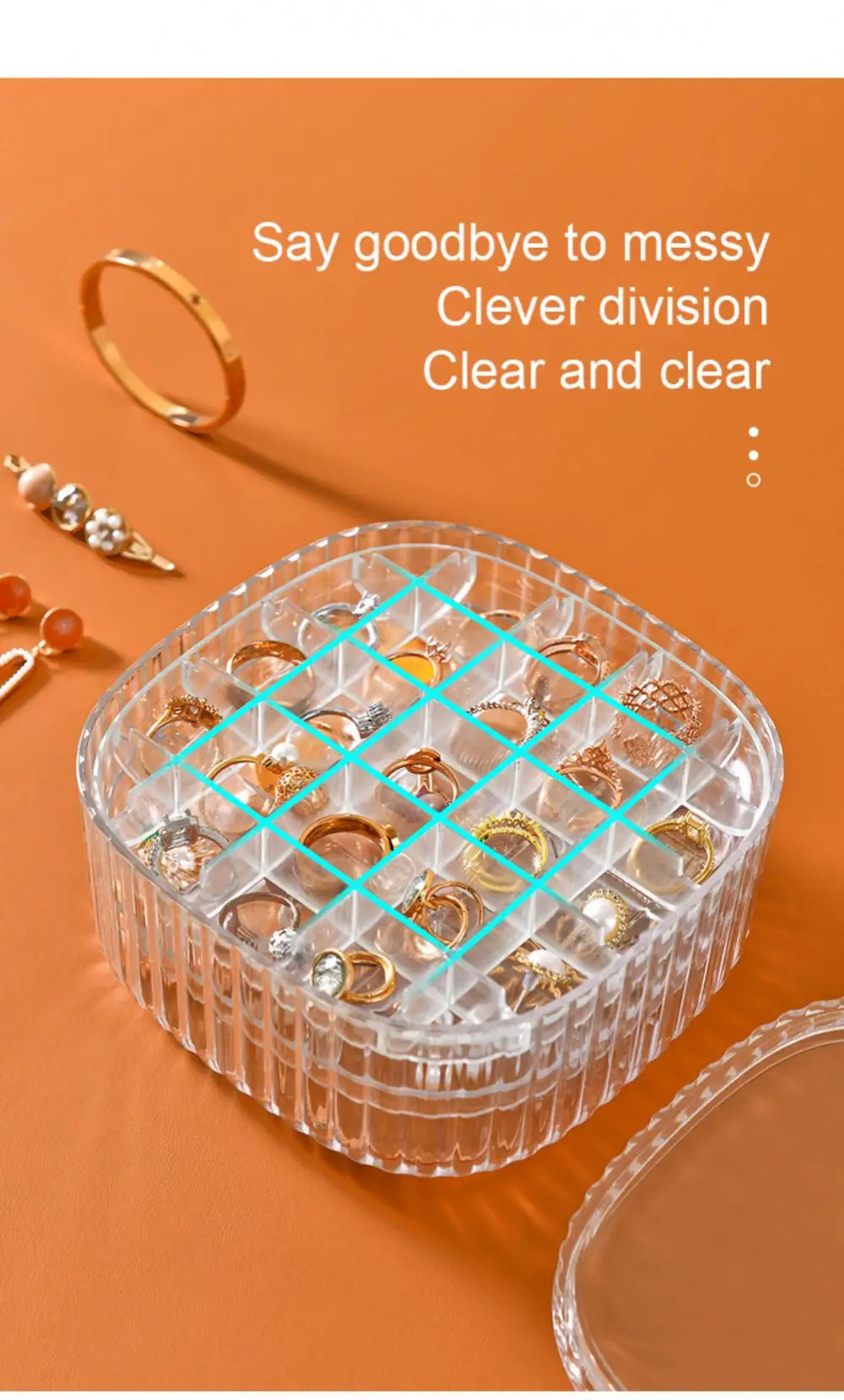 우리의 반투명 보석 보관 상자는 보석을 정리하고 보호하며 쉽게 접근할 수 있게 하려는 모든 사람에게 꼭 필요한 제품입니다. 다층 보관함과 방진 커버가 있어 좋아하는 보석을 모두 보관할 수 있는 완벽한 보관 솔루션입니다. 쌓을 수 있는 디자인과 명확하고 잘 정돈된 수납 공간으로 필요한 수납 공간을 쉽게 맞춤화하고 원하는 것을 빠르게 찾을 수 있습니다.