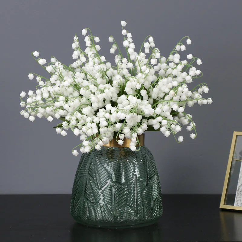 아름다운 순수한 흰색 벨 난초 플라스틱 인공 꽃 배열 용품 홈 장식 가짜 식물 파티 선물