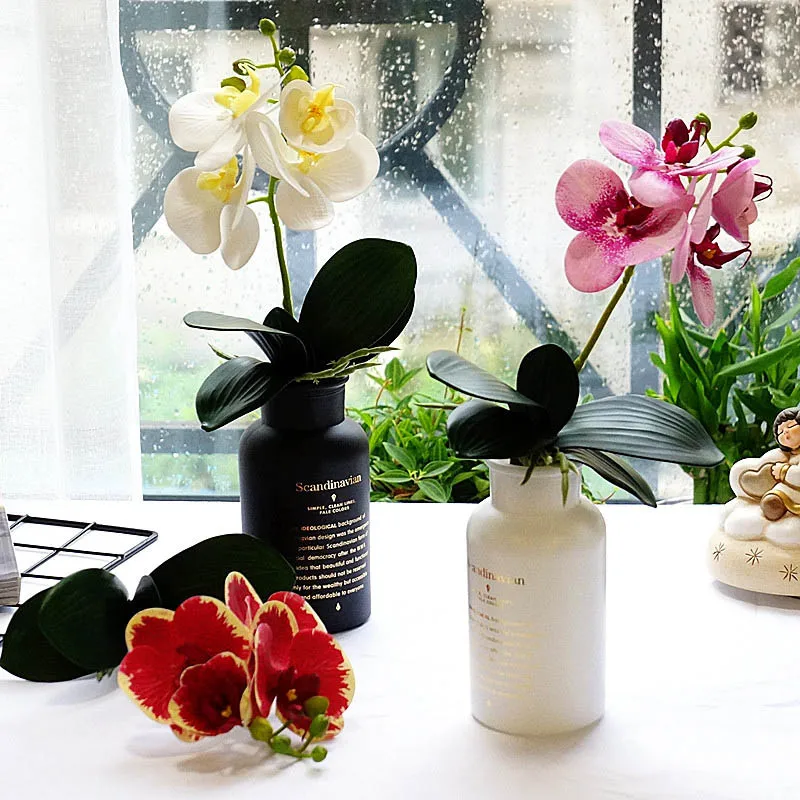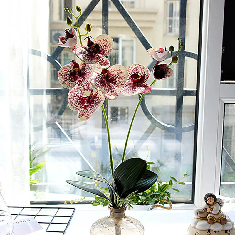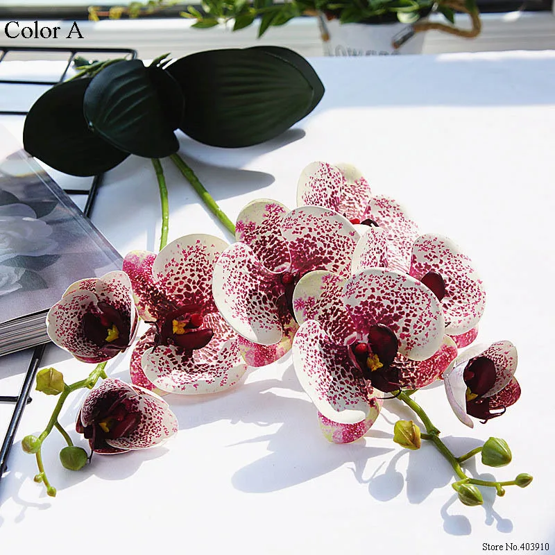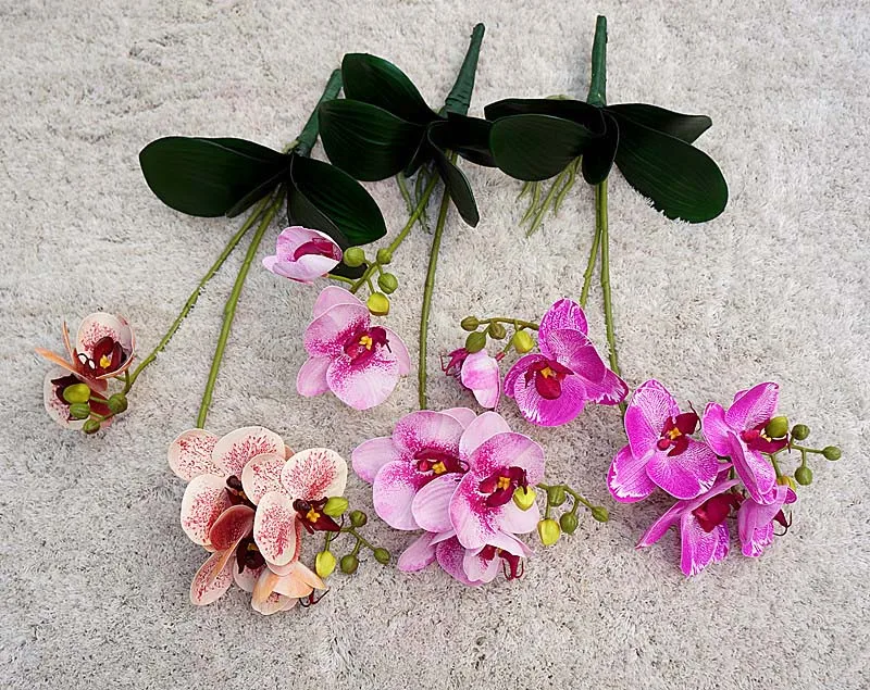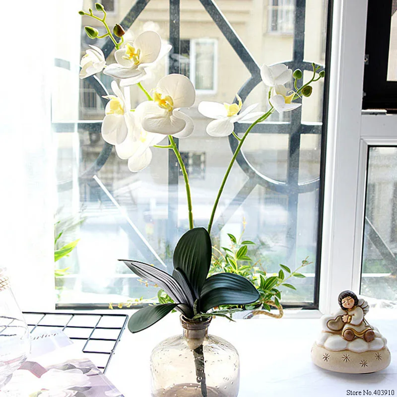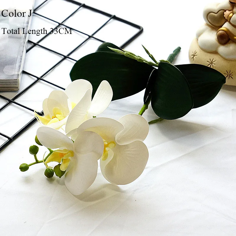 럭셔리 보타니카 라텍스 난초 잎 인공 꽃 흰 나비 난초 가짜 꽃 홈 웨딩 장식 플로레스
