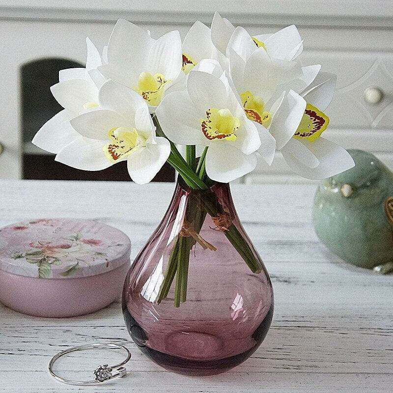 4 개/번들 흰색 난초 웨딩 신부 부케 mariage 라텍스 인공 꽃 DIY 스크랩북 플로레스 artificiales 하우스 장식
