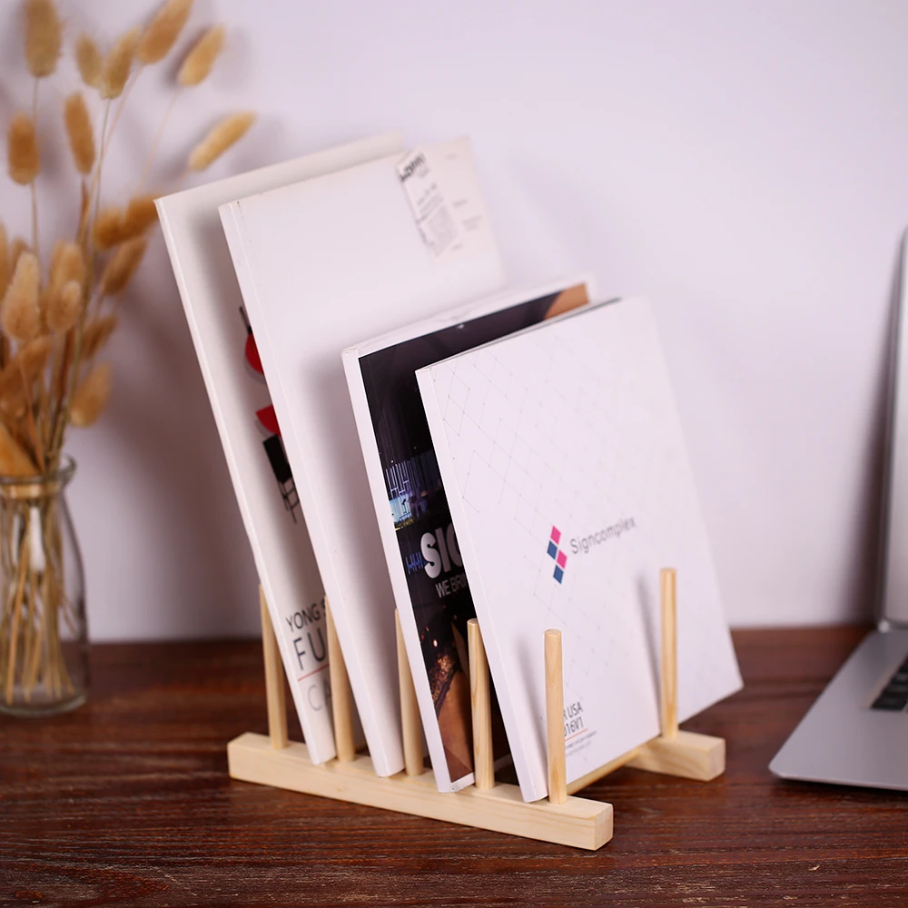 나무 책 잡지 보관 스탠드 정리함 - 책, CD 및 파일을 위한 우아한 책상 홀더