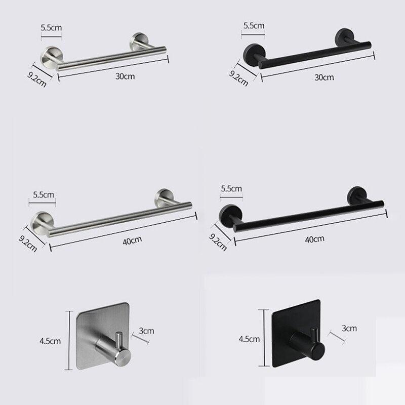 스테인레스 스틸 랙 로브 후크 화장실 타월 바 티슈 페이퍼 홀더 욕실 정리 액세서리 세트로 욕실을 높이십시오. 하나의 종합 세트로 스타일, 기능성, 내구성의 완벽한 조화를 경험해 보세요.