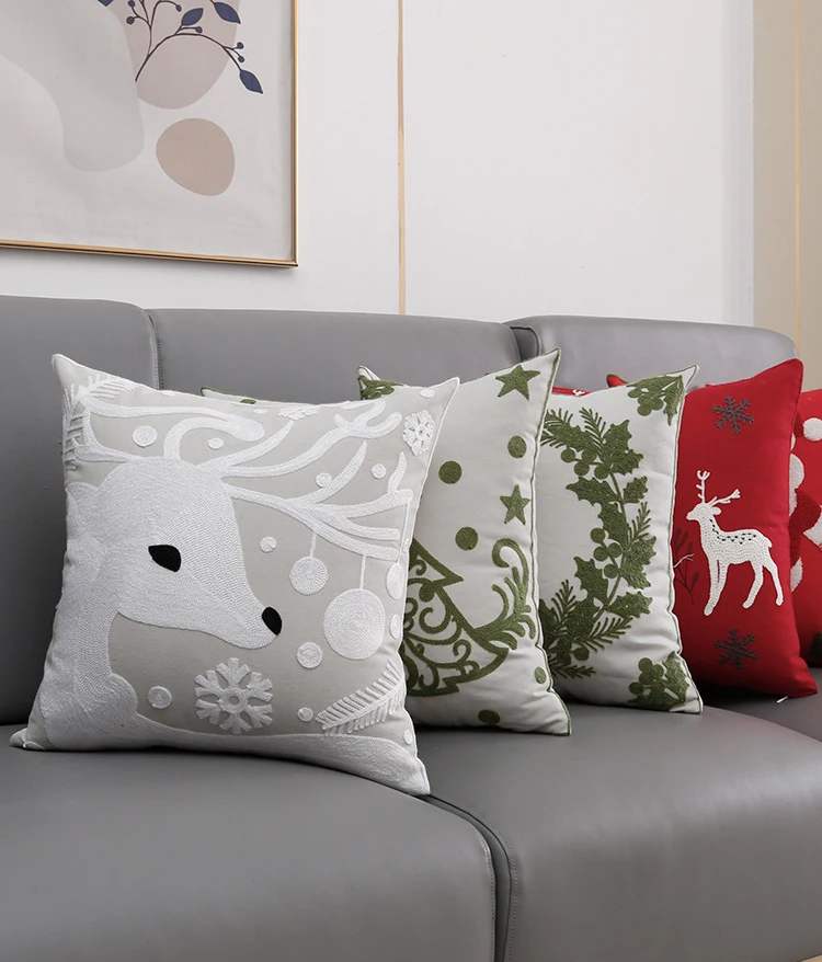 크리스마스 장식 쿠션 커버로 휴가용 주택 장식을 한층 높여보세요. 고품질 면으로 제작된 이 정사각형 베개 커버는 절묘한 자수가 특징이며, 매력적인 크리스마스 화환, 섬세한 눈송이, 축제 녹색과 붉은 색조의 우아한 순록 디자인을 선보입니다. 45x45cm 크기의 쿠션커버로 생활 공간에 크리스마스 마법을 더해보세요. 이 절묘한 작품으로 계절의 정신을 담아보세요.