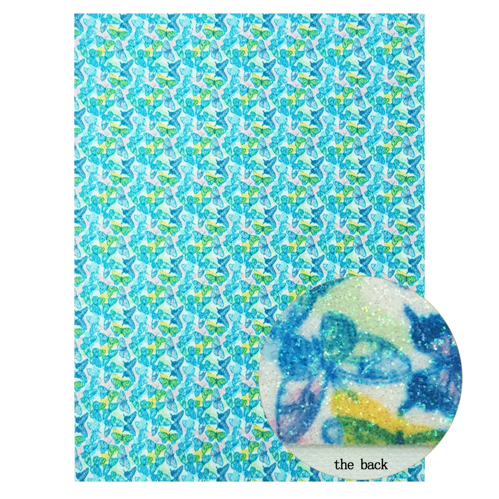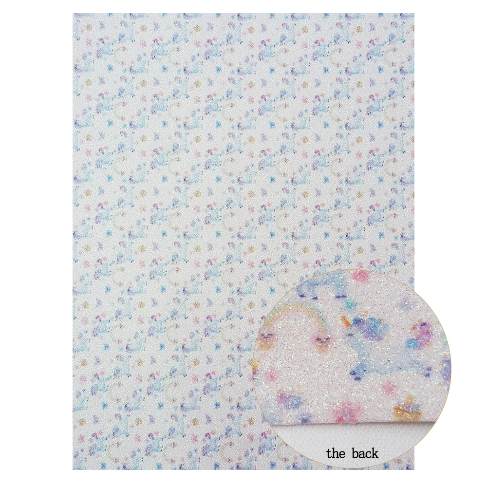 QIBU 22*30CM 유니콘 반짝이 패브릭 인쇄 나비 합성 가죽 공예 DIY Hairbow 재료 홈 인테리어 액세서리