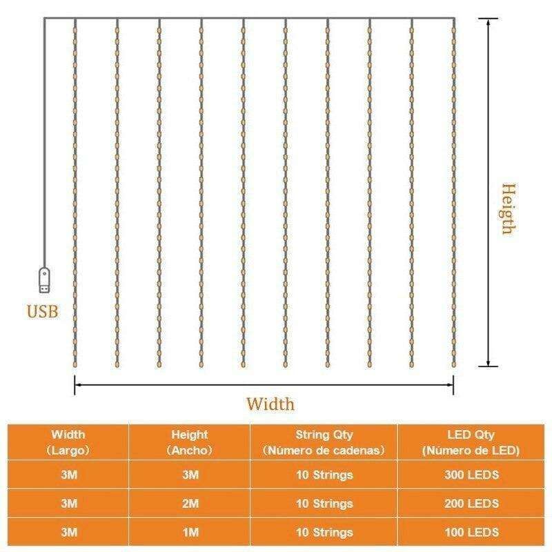 1 x 3M(W) x 1/2/3M(H) 100/200/300 LED 커튼 조명 - 상단에서 선택한 옵션에 따름.