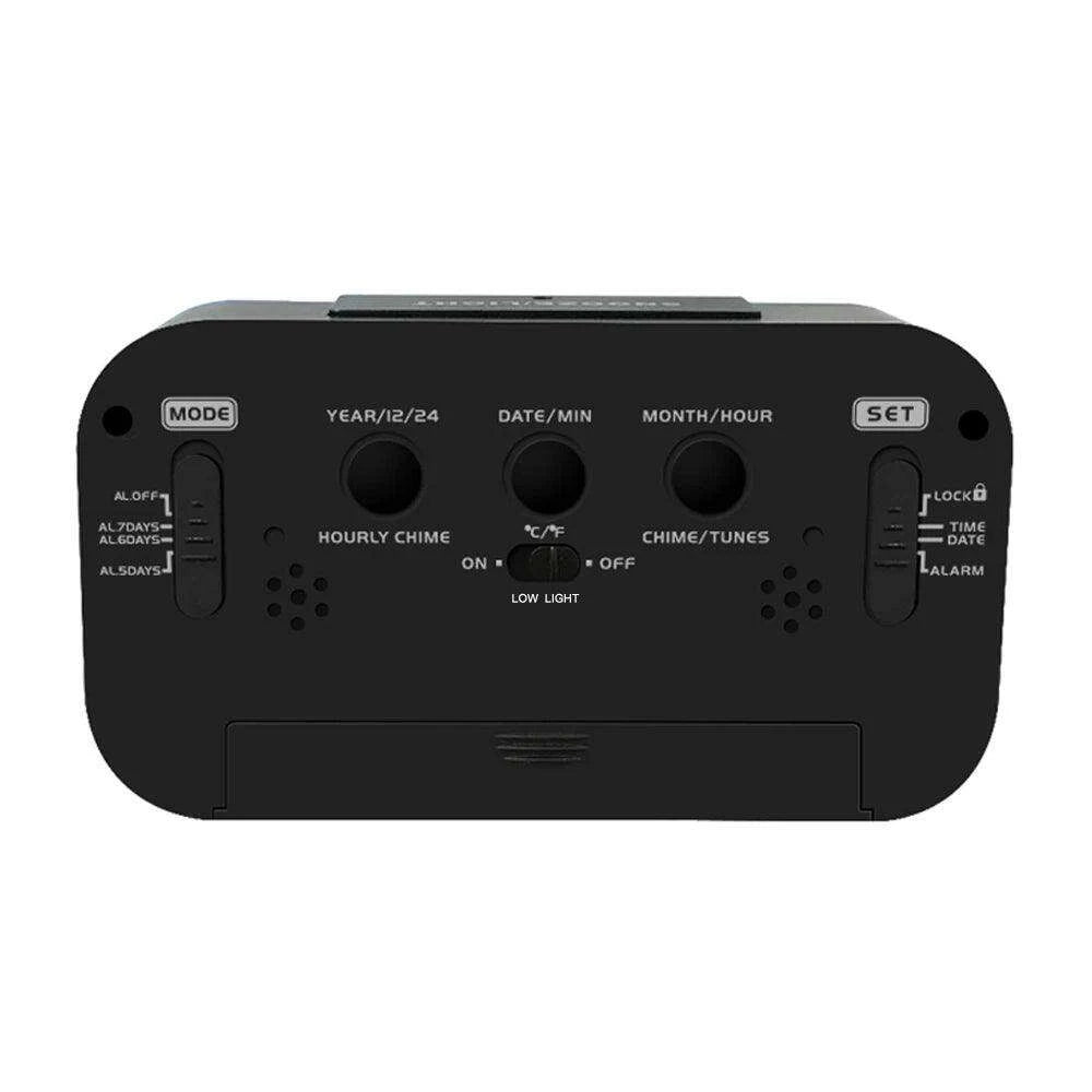 English Voice-Activated Alarm Clock with Temperature, Calendar, Snooze, and Backlight Features
