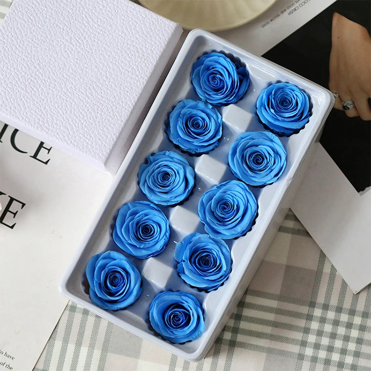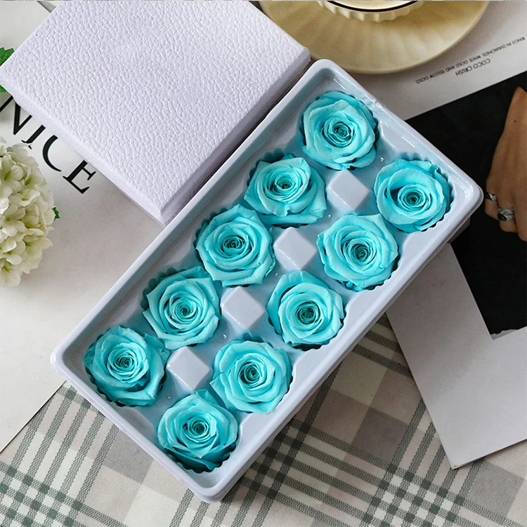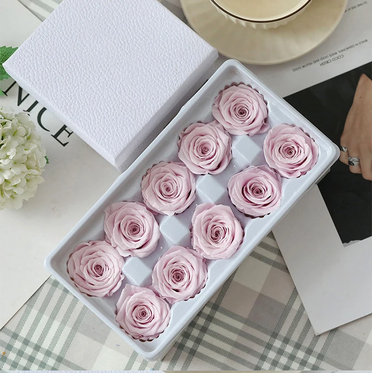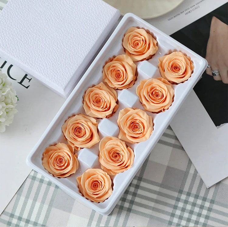 10 개/몫 하이 엔드 불멸의 장미 꽃 보존 꽃 5-6CM 직경 어머니의 날 선물 영원한 생명 꽃 재료 선물 상자
