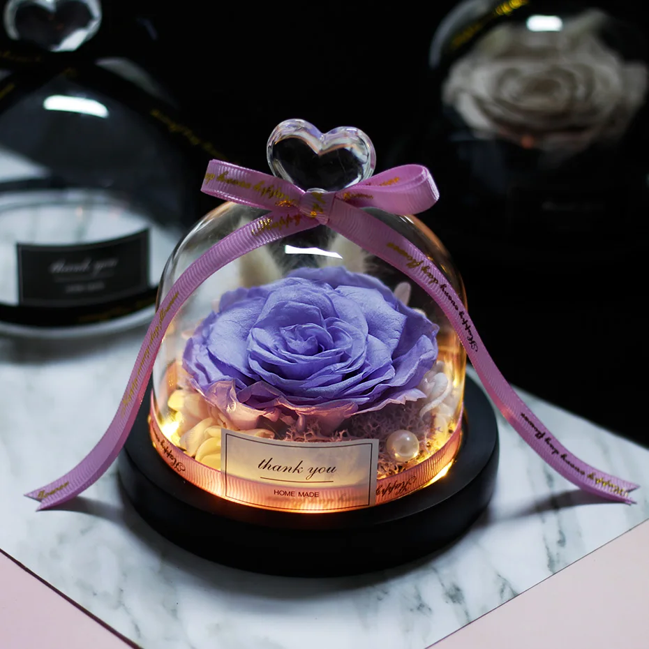 크리스마스 아름다움과 야수 로즈 led 라이트와 유리 돔에서 영원한 진짜 로즈 웨딩 장식 발렌타인 데이 어머니의 날 선물