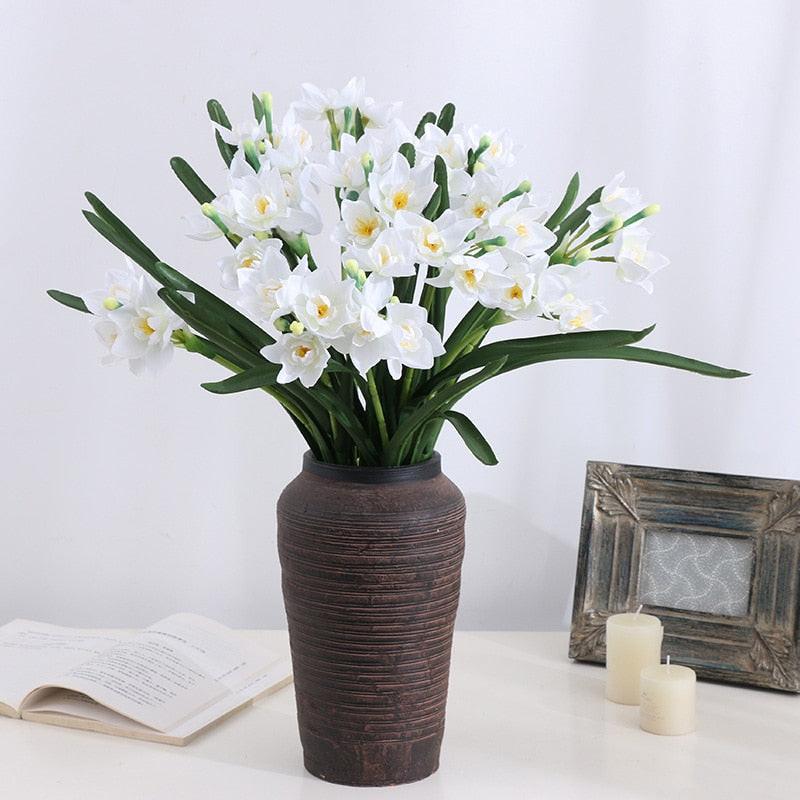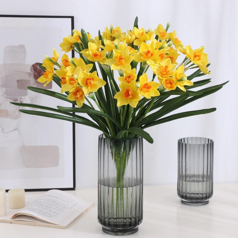 인공 실크 수선화 꽃다발 - 결혼식 꽃꽂이, 가정 장식, 사진 소품