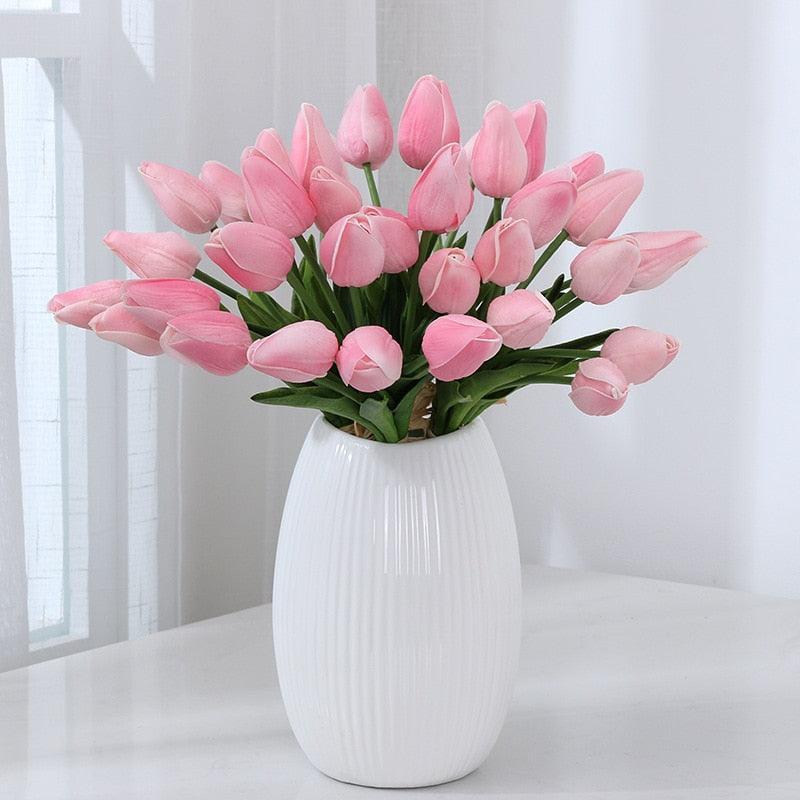 10 개/대 뜨거운 판매 인공 꽃 튤립 칼라 릴리 시뮬레이션 pu 가짜 꽃 웨딩 장식 파티 호텔 홈 장식 식물