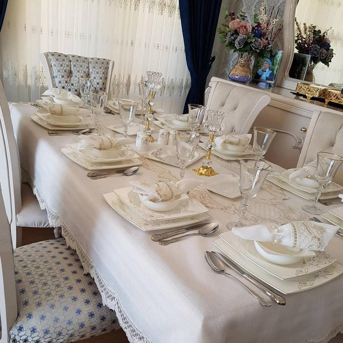 이 절묘한 럭셔리 프렌치 레이스 식탁보 세트로 테이블 장식을 높이십시오. 은은한 리넨 원단에 프렌치 레이스를 꿰매어 만든 섬세한 자수 디자인은 어떤 행사에도 우아함을 더해줍니다. 결혼식과 파티에 적합한 이 세트에는 냅킨(30cm x 30cm) 12개, 냅킨 링 12개, 식탁보(160cm x 220cm) 1개, 러너 1개(40cm x 130cm)가 포함되어 있습니다. 아름다운 직조 기술과 터키의 원산지로 손님에게 깊은 인상을 남깁니다. 당신의 특별한 날을 위한 이 머스트 해브 아이템을 놓치지 마세요.